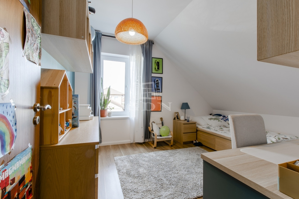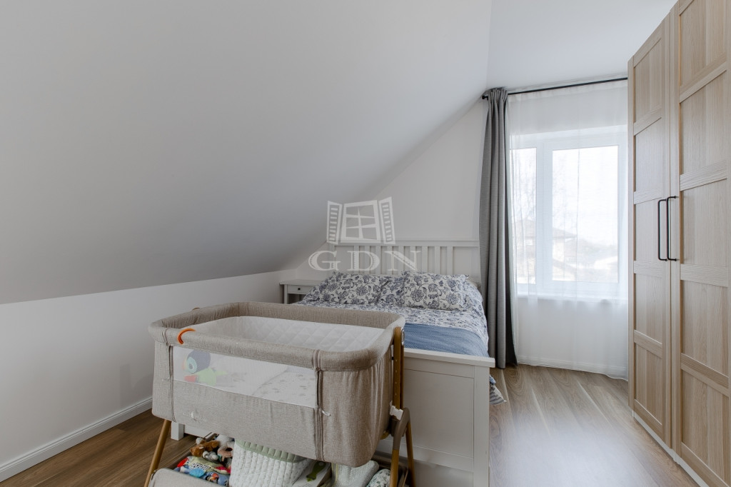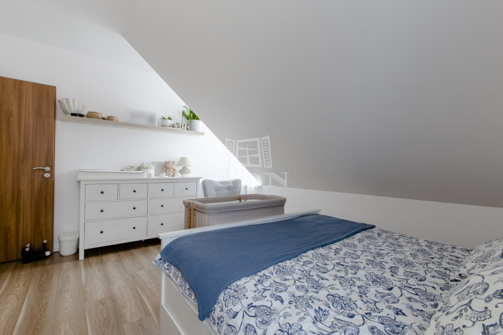 Az emeleten három teljes értékű külön nyíló szoba és egy kádas fürdőszoba lett kialakítva.