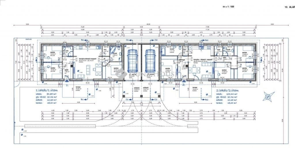 amiből 158 m2 közös használatú kocsibeálló.
