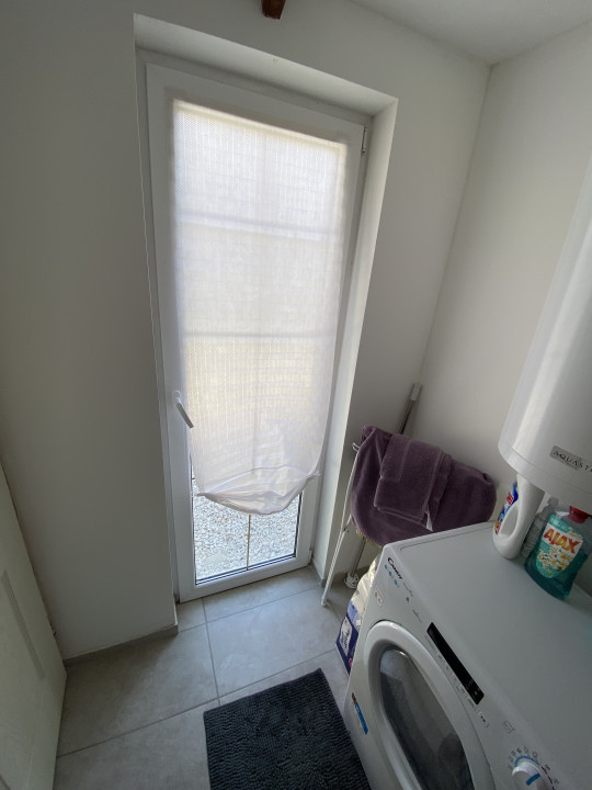Az áram 3*20 Amper, 3 fázis, H tarifa helye is meglett, bővítésre. Kettő klíma is rendelkezésünkre áll, hátul villanypanelekkel, plusz a radiátoros fűtés és kiegészítésnek egy kandalló, új kéménnyel, a második fürdőben van egy külön boiler.