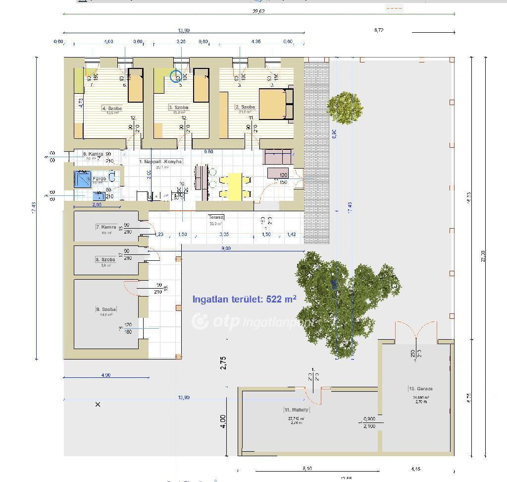 Főbb jellemzők: hasznos alapterület: 93 m2, telek mérete: 522 m2