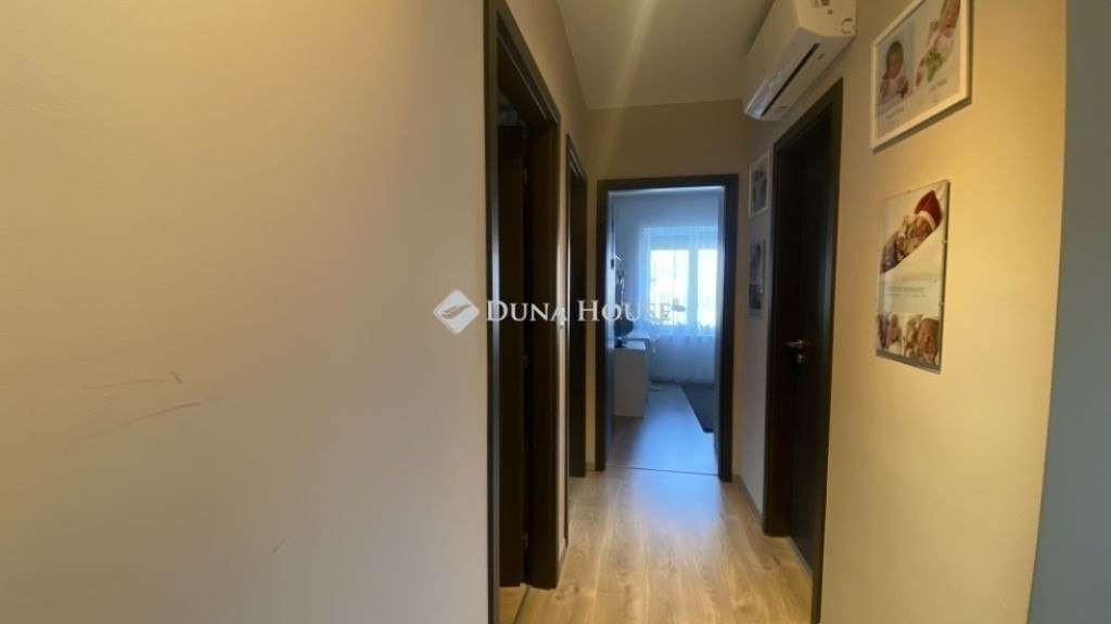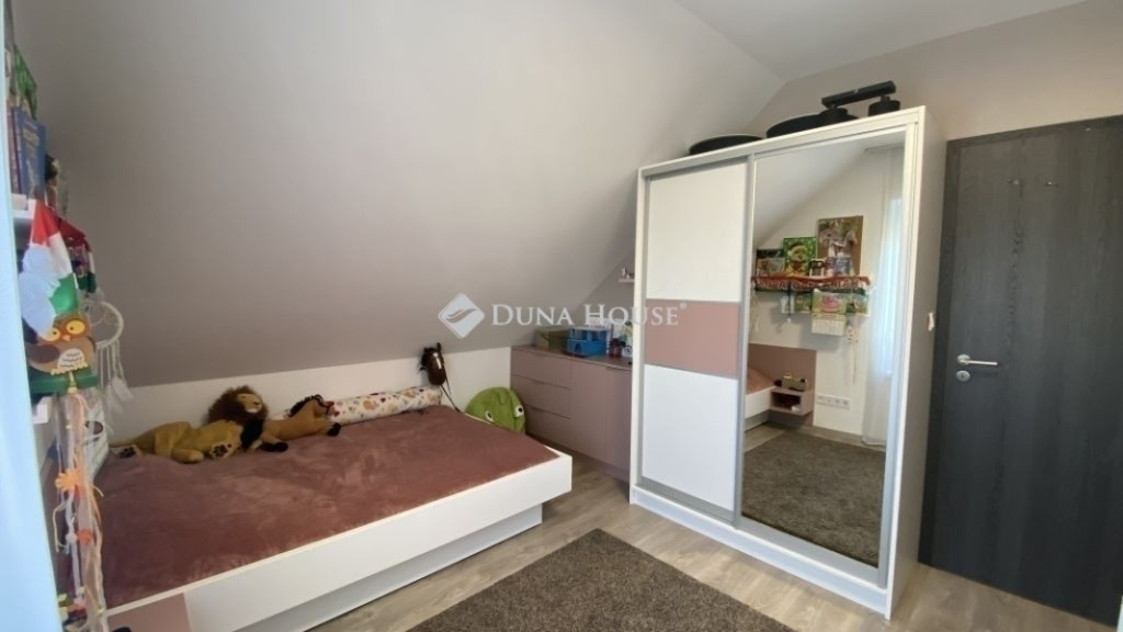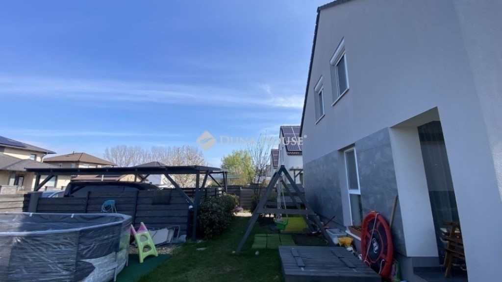 Üllőn, a közkedvelt Sportliget lakóparkban igényes állapotú ikerház eladó!Üllő egyik legkedveltebb, frekventált ám mégis nyugodt részén kínálunk eladásra egy nagyon jó állapotú, belső kétszintes ikerházat, rendezett, barátságos környezetben.Az 90 m2-es ingatlan átgondolt elrendezésű, világos terekkel rendelkezik. A lakás szép burkolatokkal, gondosan karbantartott állapotban várja új tulajdonosát.A földszinten tágas nappali, konyha, előtér, külön WC, valamint egy praktikus lépcső alatti tárolóhelyiség található. A konyhában a gyönyörű állapotú beépített konyhabútor a házigazda keze munkáját dícséri.Az emeleten három külön nyíló szoba, közlekedő és fürdőszoba kapott helyet, amely kényelmes életteret biztosít a teljes család számára. A közlekedőben is jól átgondolt, praktikus beépített szekrények kaptak helyet. A fürdőben kád és zuhanykabin is kényeztetésre csábít.A tégla építésű szigetelt ház műanyag nyílászárókkal felszerelt. Az otthon melegéről korszerű elektromos padlófűtés rendszer gondoskodik, melyet helyiségenkénti hőmérsékletszabályozás tesz még optimálisabbá.Szintenként felszerelésre került egy-egy hűtő-fűtő klíma is, melyek az enyhébb napokon tökéletesen befűthetik a házat, s a nyári melegben kellemes hőmérsékletet varázsolhatnak.A saját kertrész a nappaliból a teraszon át is megközelíthető, a sarokban egy praktikus tároló is helyet kapott. A parkosított udvar kiváló lehetőséget biztosít pihenésre vagy családi kikapcsolódásra. Az ingatlanhoz fedett kocsibeálló is tartozik.A környék csendes, családbarát, ugyanakkor minden fontos szolgáltatás könnyen elérhető.Ideális választás mindazok számára, akik jó állapotú, azonnal költözhető otthont keresnek Üllő egyik legjobb részén.Amennyiben felkeltettem érdeklődését, további információért és megtekintési időpont egyeztetésért keressen bizalommal!A Duna House teljes kínálatával állok rendelkezésére!Ingatlan eladás és vétel teljes körű ügyintézése, megbízható ügyvédi háttér biztosítása, ingyenes ingatlan tanácsadás, teljes körű és gyors bankfüggetlen hitelügyintézés, biztosítás, energetikai tanúsítvány akár hozott ingatlanra is az ország piacvezető ingatlanközvetítő hálózatának támogatásával!
