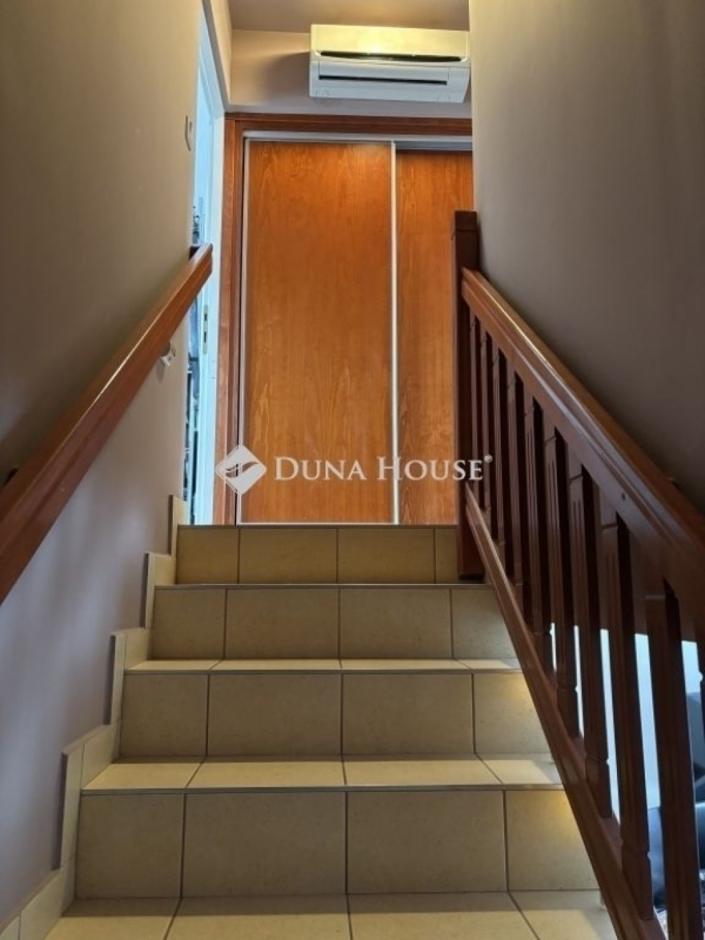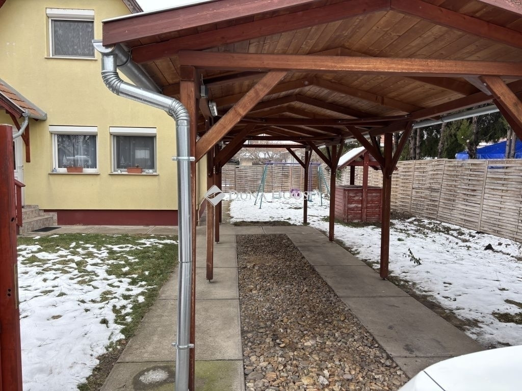 Eladó Pest-megyében, Üllőn, 294 nm-es, összközműves telken, egy 2006-os építésű, 64 nm-es, nappali + 2 szobás, tetőtér beépítéses Ikerház fél.Az épület 2006-ban épült, beton alapra, tégla falazattal, beton födémmel, cseréppel fedett tetővel. A falazatra egységes, 10 cm-es dryvitos hőszigetelés került. A nyílászárók hőszigetelt üvegezésű, műanyag szerkezetek, redőnnyel és szúnyoghálóval szerelve.A lakás földszinti részén szélfogó, előszoba, nappali, konyha, fürdő, a tetőtérben közlekedő és két háló található. A hátsó kert kívülről és a konyhából nyíló ajtón keresztül a teraszon át is megközelíthető.A nappali és a szobák laminált parkettával, a többi helyiség és az emeletre felvezető beton lépcső is, járólappal fedett.A konyhabútor a gépészettel, és az elszívóval együtt a vételár részét képezi.A fűtésről és a használati meleg víz-ellátásról kombi cirkó gondoskodik, a hőleadók lapradiátorok. A tetőtérben hűtő-fütő klíma berendezés emeli a komfortérzetet. Az ingatlan mozgásérzékelőkkel, riasztóval szerelt.A 845 nm-es önálló telken 3 önálló egységet alkotó ingatlan található. Az eredeti épület egy régebbi építésű családi ház. A porta megosztásra került és 2006-ban, egymáshoz képesti eltolással két ikerház épült, melyből most az egyik eladó.Az eladásra kínált ingatlan természetben is és jogilag is teljesen független a többitől. Az iker szomszéddal közös falra 7,5 cm vastagságú Halltex hangszigetelő rendszer került.Saját használatú, lekerített, 294 nm-es kerttel rendelkezik. A telek növényekkel beültetett, melyben fúrt kút és automata öntözőberendezés szolgálja a tulajdonosok kényemét. A kertben elől két autó számára kialakított fedett kocsibeálló, és a kerti szerszámok tárolására alkalmas kis tároló található.A gépkocsibeálló kamerával megfigyelt, valamint az elektromos kapu elő lett készítve.A beépített bútőrok a vételár részét képezik!