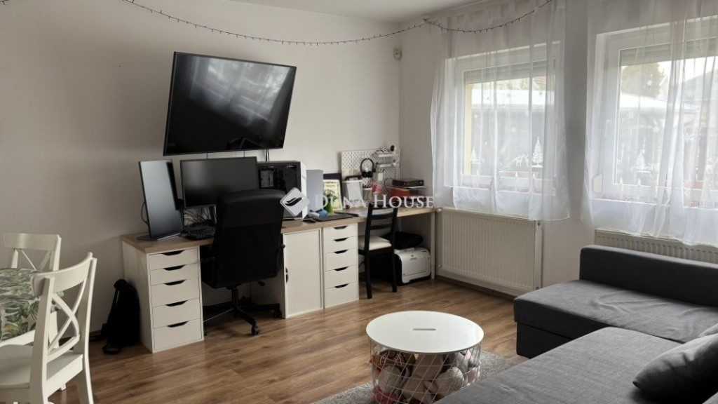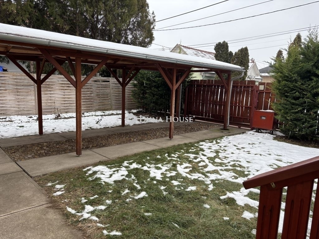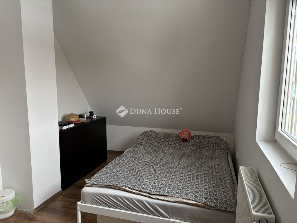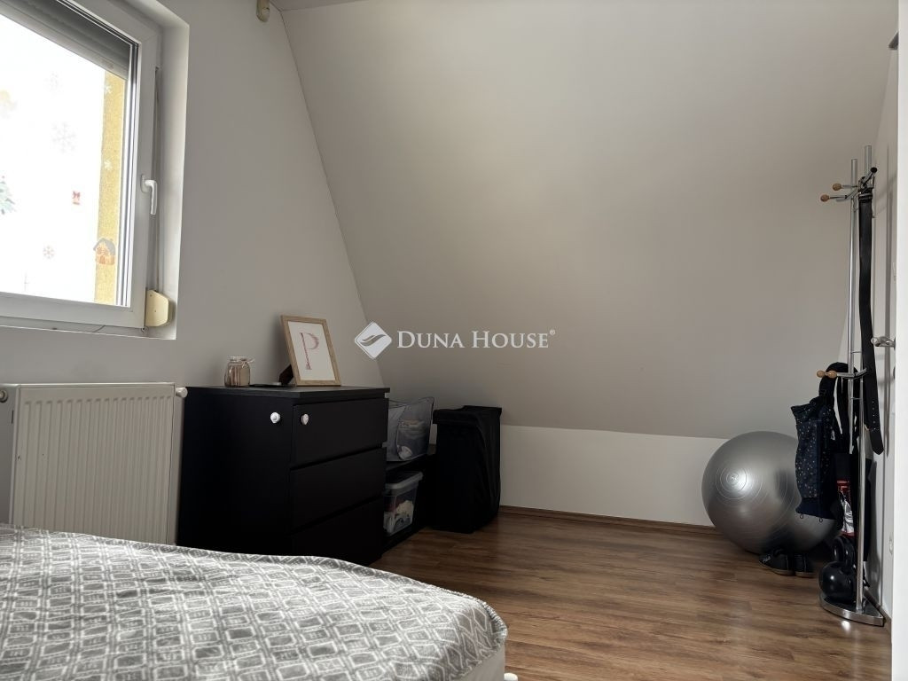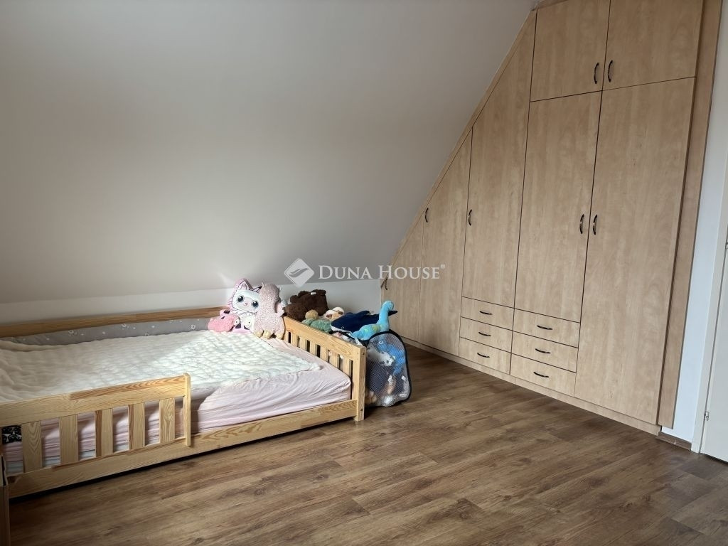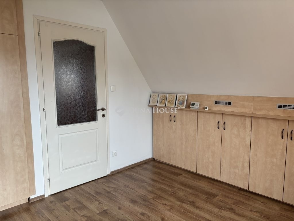 Eladó Pest-megyében, Üllőn, 294 nm-es, összközműves telken, egy 2006-os építésű, 64 nm-es, nappali + 2 szobás, tetőtér beépítéses Ikerház fél.Az épület 2006-ban épült, beton alapra, tégla falazattal, beton födémmel, cseréppel fedett tetővel. A falazatra egységes, 10 cm-es dryvitos hőszigetelés került. A nyílászárók hőszigetelt üvegezésű, műanyag szerkezetek, redőnnyel és szúnyoghálóval szerelve.A lakás földszinti részén szélfogó, előszoba, nappali, konyha, fürdő, a tetőtérben közlekedő és két háló található. A hátsó kert kívülről és a konyhából nyíló ajtón keresztül a teraszon át is megközelíthető.A nappali és a szobák laminált parkettával, a többi helyiség és az emeletre felvezető beton lépcső is, járólappal fedett.A konyhabútor a gépészettel, és az elszívóval együtt a vételár részét képezi.A fűtésről és a használati meleg víz-ellátásról kombi cirkó gondoskodik, a hőleadók lapradiátorok. A tetőtérben hűtő-fütő klíma berendezés emeli a komfortérzetet. Az ingatlan mozgásérzékelőkkel, riasztóval szerelt.A 845 nm-es önálló telken 3 önálló egységet alkotó ingatlan található. Az eredeti épület egy régebbi építésű családi ház. A porta megosztásra került és 2006-ban, egymáshoz képesti eltolással két ikerház épült, melyből most az egyik eladó.Az eladásra kínált ingatlan természetben is és jogilag is teljesen független a többitől. Az iker szomszéddal közös falra 7,5 cm vastagságú Halltex hangszigetelő rendszer került.Saját használatú, lekerített, 294 nm-es kerttel rendelkezik. A telek növényekkel beültetett, melyben fúrt kút és automata öntözőberendezés szolgálja a tulajdonosok kényemét. A kertben elől két autó számára kialakított fedett kocsibeálló, és a kerti szerszámok tárolására alkalmas kis tároló található.A gépkocsibeálló kamerával megfigyelt, valamint az elektromos kapu elő lett készítve.A beépített bútőrok a vételár részét képezik!