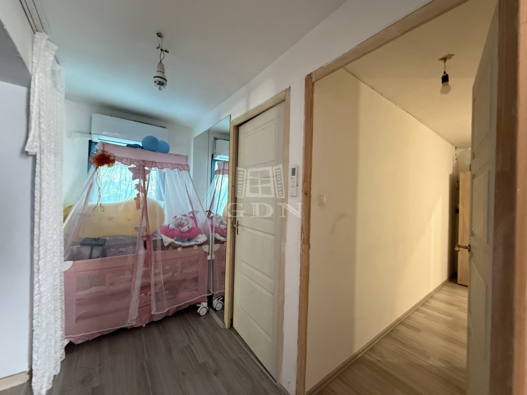 A helyiségek elosztása praktikus, nappali-étkező-konyha, négy szoba, közlekedő és fürdőszoba található benne.