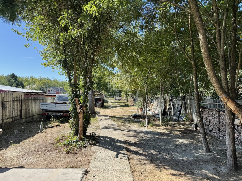 A telek 11 méter széles és 97 méter hosszú, a ház az utcafronttól körülbelül 47 méterre helyezkedik el, a közművek közül víz, villany és csatorna is be van vezetve.