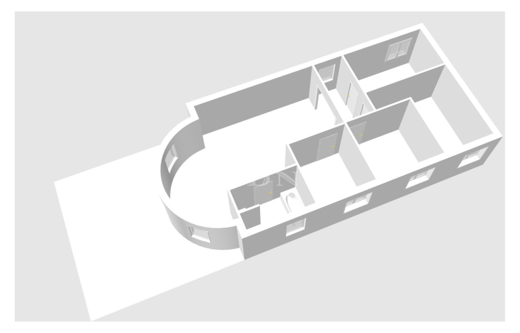 A tégla falazatú, cserepeslemez tetős ingatlan műanyag thermo nyílászárókkal felszerelt, belmagassága 2,1 méter.