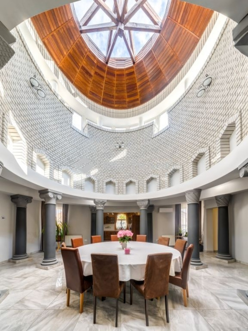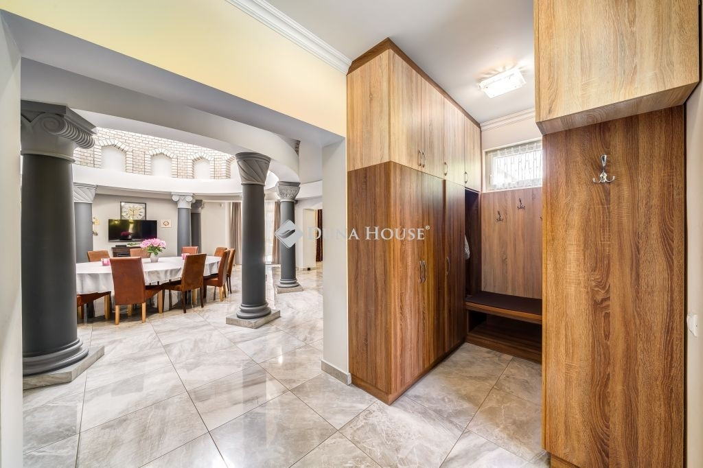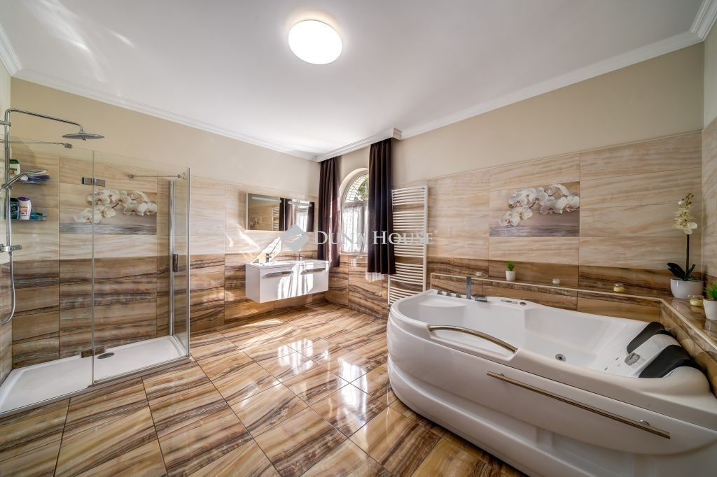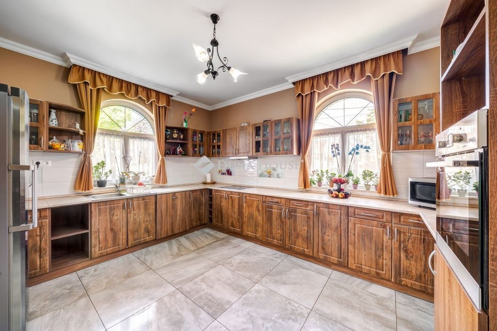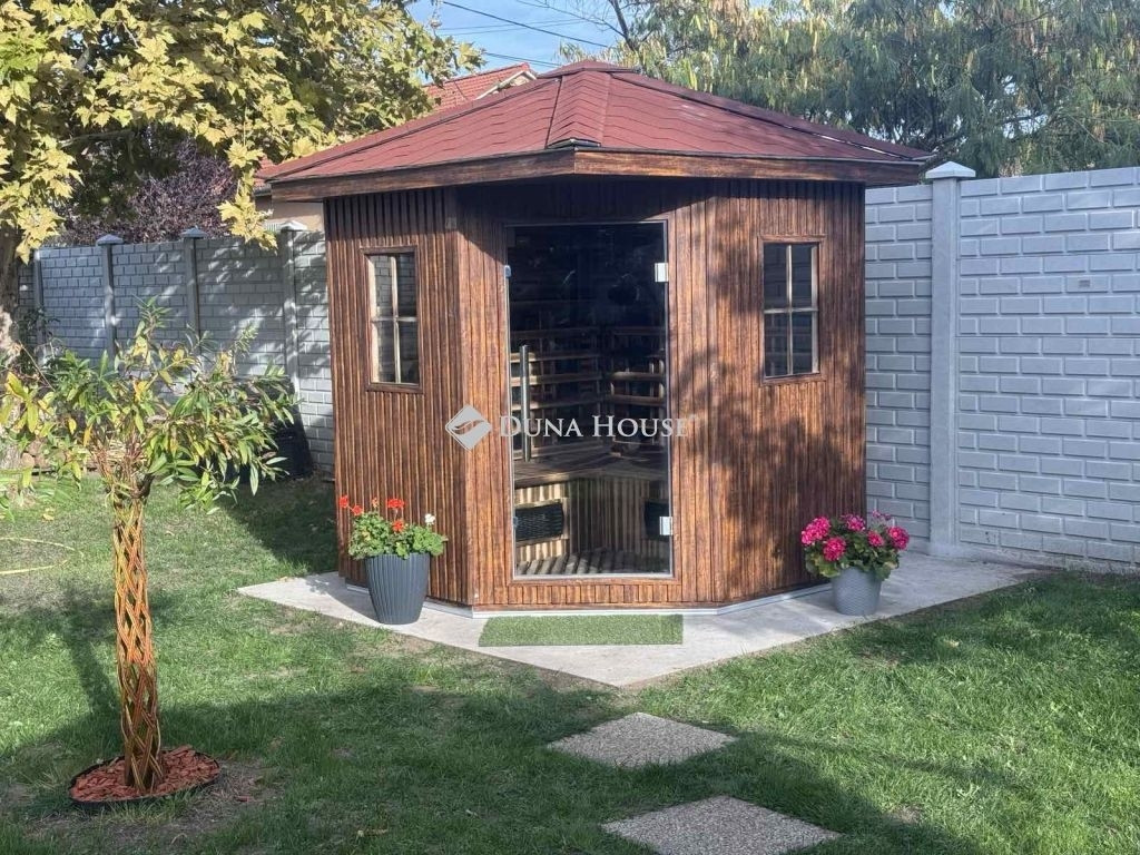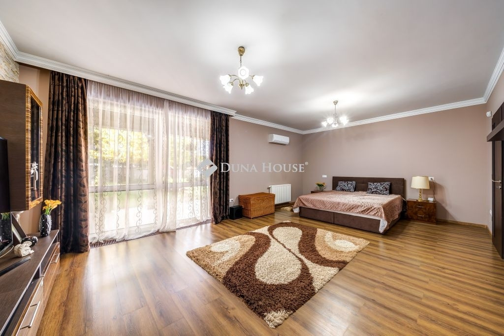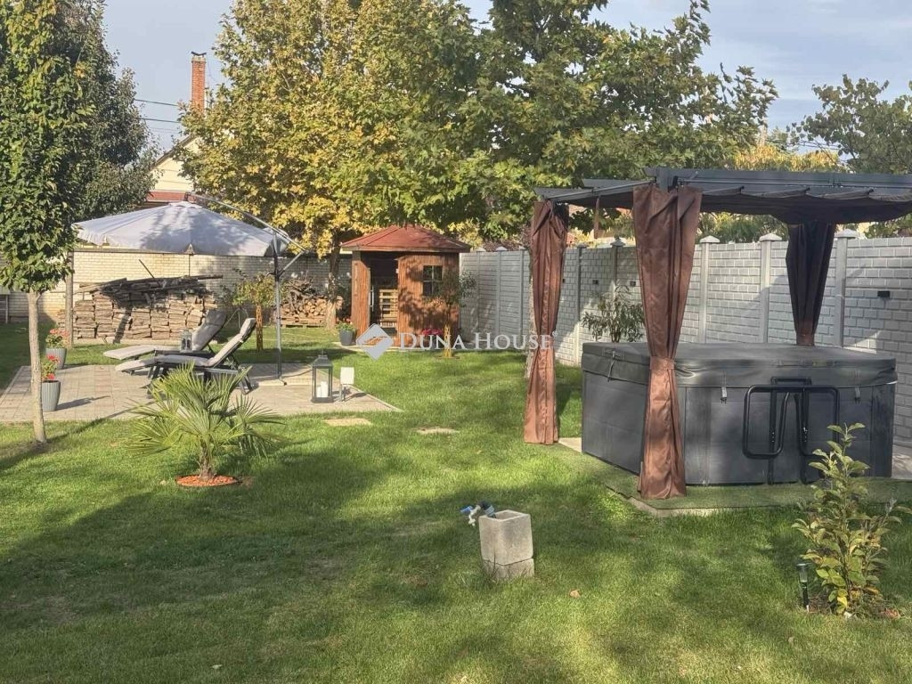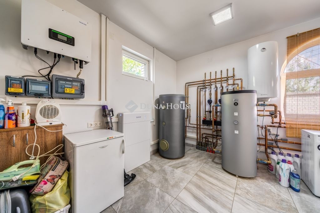 Tisztelt Érdeklődő!Engedje meg, hogy figyelmébe ajánljak egy igazán különleges ingatlant, amely egyszerre ötvözi a modern kényelmet és a klasszikus eleganciát.A közel 270 m²-es lakótér egy szinten helyezkedik el, tágas és jól átgondolt alaprajzzal. A központi étkezőterem impozáns oszlopsorral övezve különleges atmoszférát teremt, ideális családi összejövetelekhez és vendégek fogadásához. A nappali világos és tágas, a hálószobák kényelmes méretűek, a fürdőszobában jakuzzis fürdőkád található, emellett infraszauna és praktikus háztartási helyiség is szolgálja a mindennapokat.Az ingatlan közel 2 100 m²-es telken helyezkedik el, ahol fedett teraszok, napozóterasz és parkosított kert biztosítanak nyugodt pihenést. A medence elhelyezésére az előkészítés megtörtént.A ház korszerű gépészeti megoldásokkal felszerelt: napelemek, hőszivattyús fűtés, klíma és elektromos autó töltő gondoskodnak a fenntartható és gazdaságos működésről. Az épület energetikai besorolása A+, amely hosszú távon is előnyös választássá teszi.További értékek:- Különleges építészeti kialakítás oszlopsorral- Jakuzzis kád- 6 személyes kültéri infraszauna- kültéri jakuzzi- Kerti tároló- 2 nagy teljesítményű robotfűnyíró- Napelem és hőszivattyú (10 kW-os tárolóval, H-tarifával) Energiatakarékos gázcirkó- Elektromos autó töltő- Biztonsági rendszer: kamera, riasztó, biztonsági ajtóEz az ingatlan valóban különleges, tökéletes választás mindazok számára, akik tágas tereket, biztonságot és modern megoldásokat keresnek.Amennyiben felkeltette érdeklődését, szívesen állok rendelkezésére egy személyes bemutatás során.Üdvözlettel:Széll EmesePrémium Ügyfelek Privát Ingatlanosa