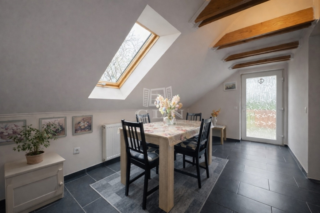 A tetőtéri rész (~50m2) külön bejárattal rendelkezik. Ezen a szinten egy fürdőszoba, WC és egy egy-légterű amerikai konyha nappali található, melyben egy elszeparált haló rész is helyet kapott.