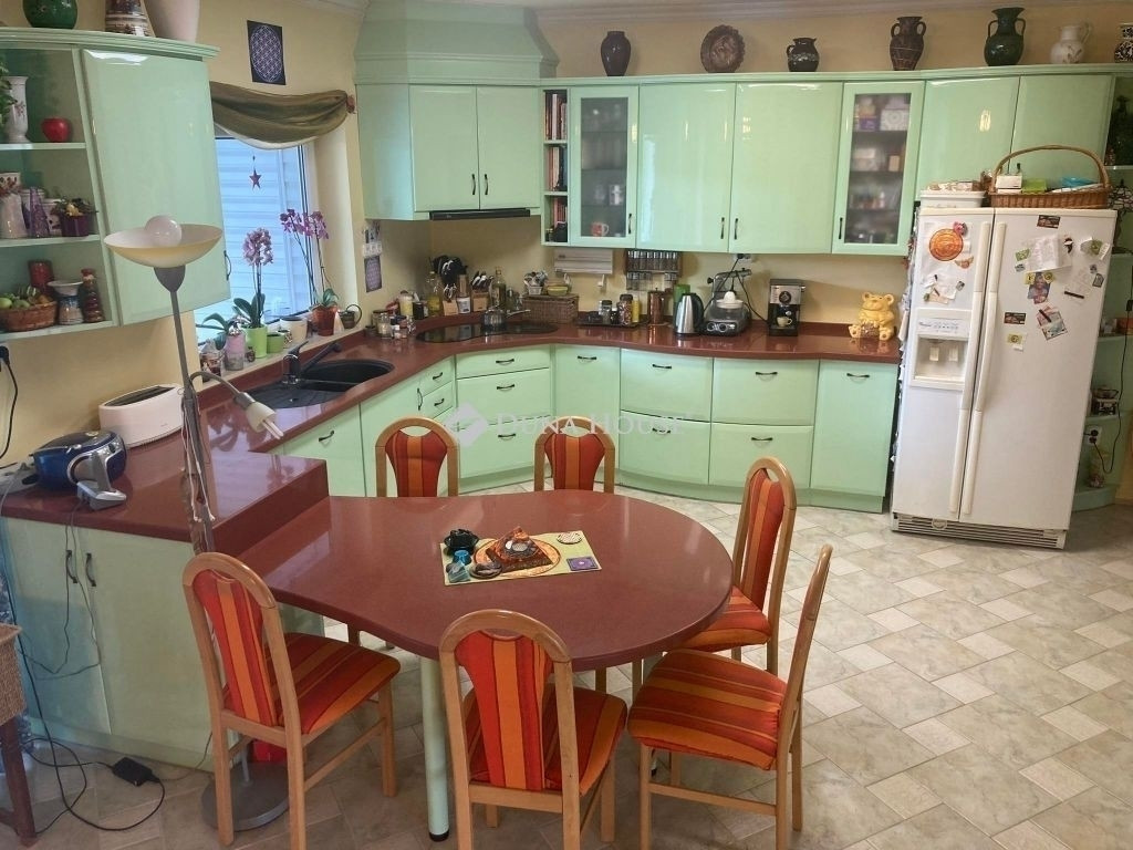 A földszint 278 m² alapterületű, rendkívül tágas és világos terekkel rendelkezik. A lakótér kialakítása praktikus és elegáns: amerikai konyha étkezővel és közvetlen teraszkapcsolattal, nappali, két hálószoba saját fürdőszobával, két vendégszoba, dolgozószoba, további fürdőszoba, két különálló WC, kamra és gardrób biztosítja a kényelmet.