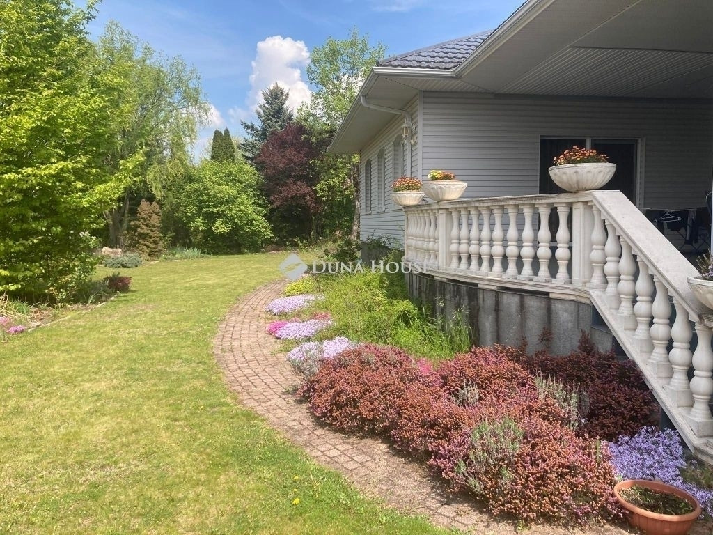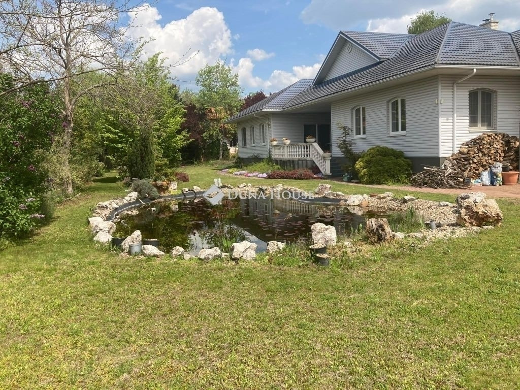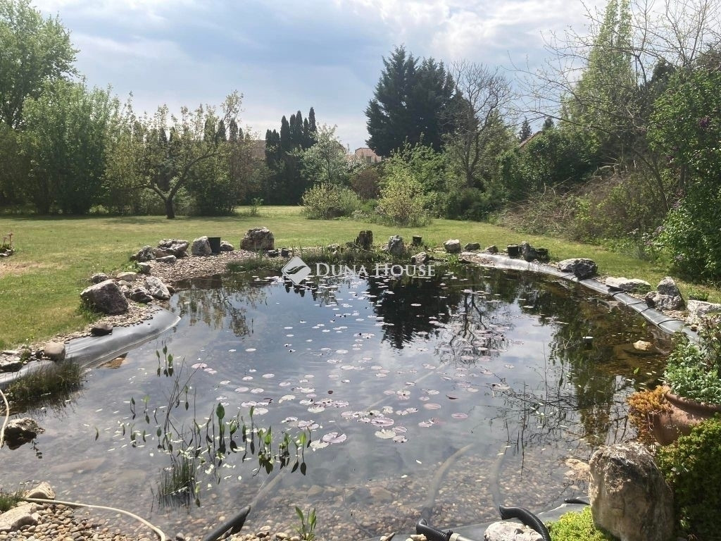 A 2080 m²-es telek parkosított, gondozott kerttel, érett növényzettel és egy mesterséges tóval rendelkezik – igazi nyugalomsziget a város szélén.