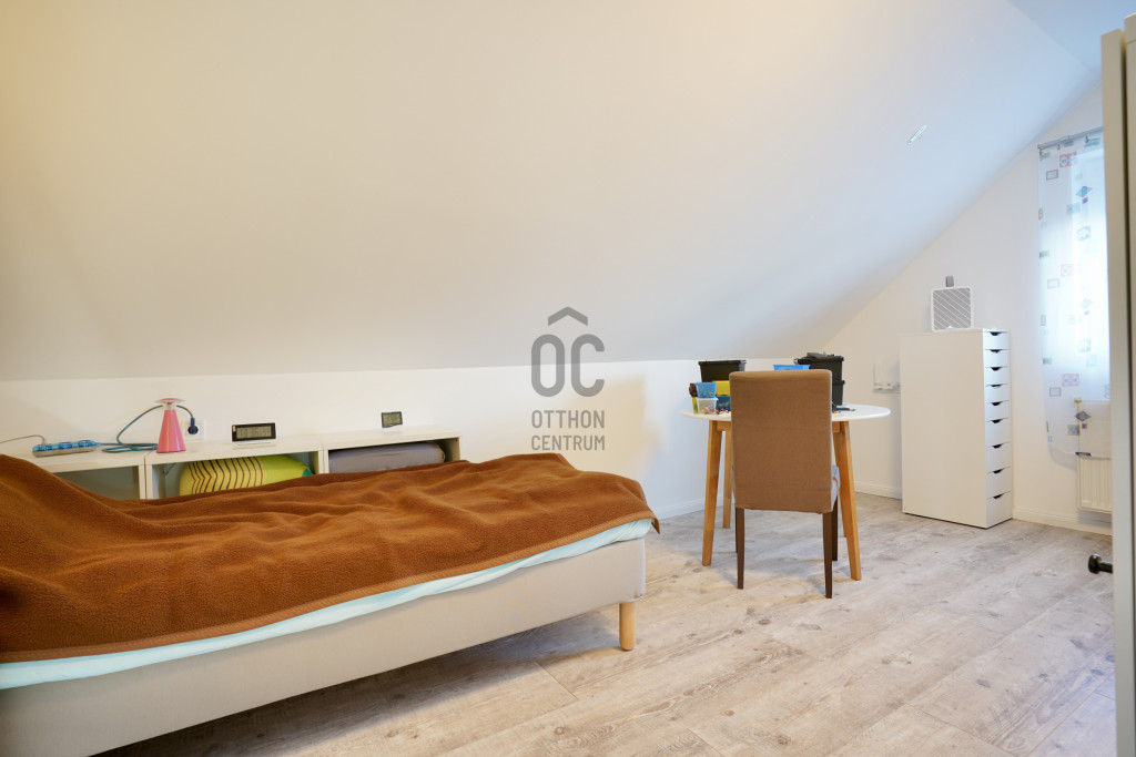 A 2005-ben épült, masszív Porotherm téglaház 2022 óta folyamatos korszerűsítésen esett át. A 255 cm-es belmagasság és a jó tájolás világos, barátságos belső tereket eredményez. A mindennapi komfortot tovább növeli, hogy minden hálószoba, valamint a nappali is klimatizált, így az év minden szakában kellemes hőmérséklet biztosított.