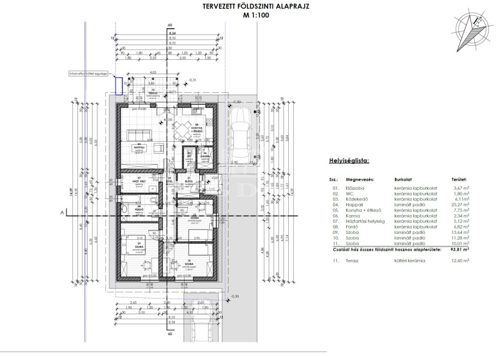 Vácon, a csendes és jól megközelíthető Ösvény utcában kínálunk eladásra egy 502 m²-es telken épülő új, kulcsrakész önálló családi házat, 93,81 m² nettó hasznos lakótérrel és 12,6 m²-es terasszal.