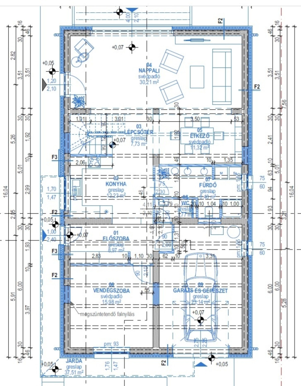 Övezeti besorolás: Lke-1, beépíthetőség: 30 %