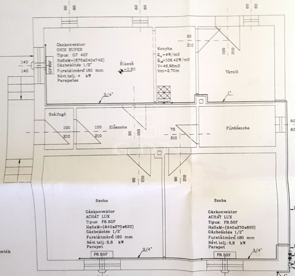 A fűtésről gázkazán, és két cserépkályha gondoskodik.