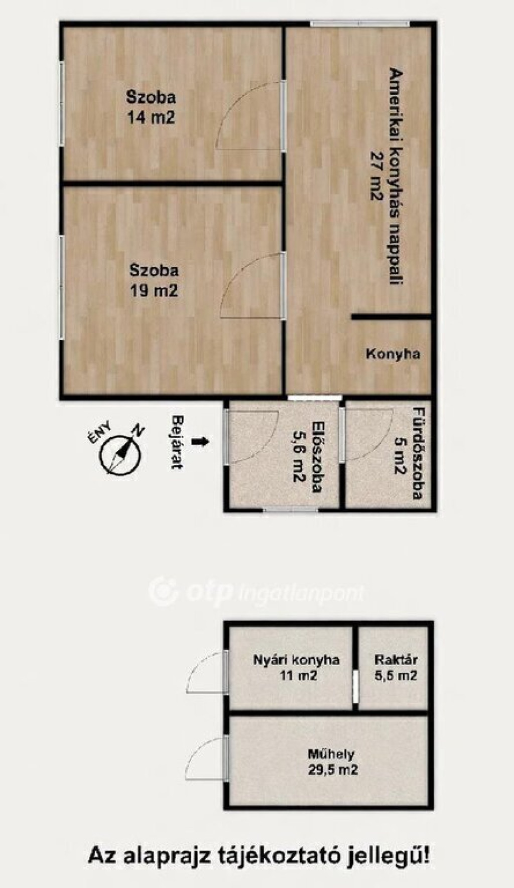 A telken emellett található egy 46 m2-es melléképület is, amely bútorozott nyári konyhát, kamrát, tárolót és garázst foglal magában.