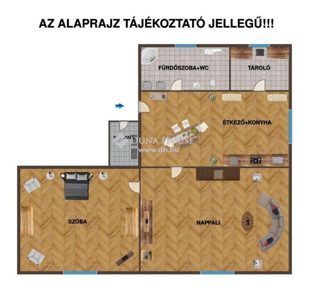 - praktikusan kialakított belső elrendezés, külön nyíló szobák