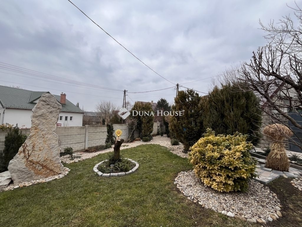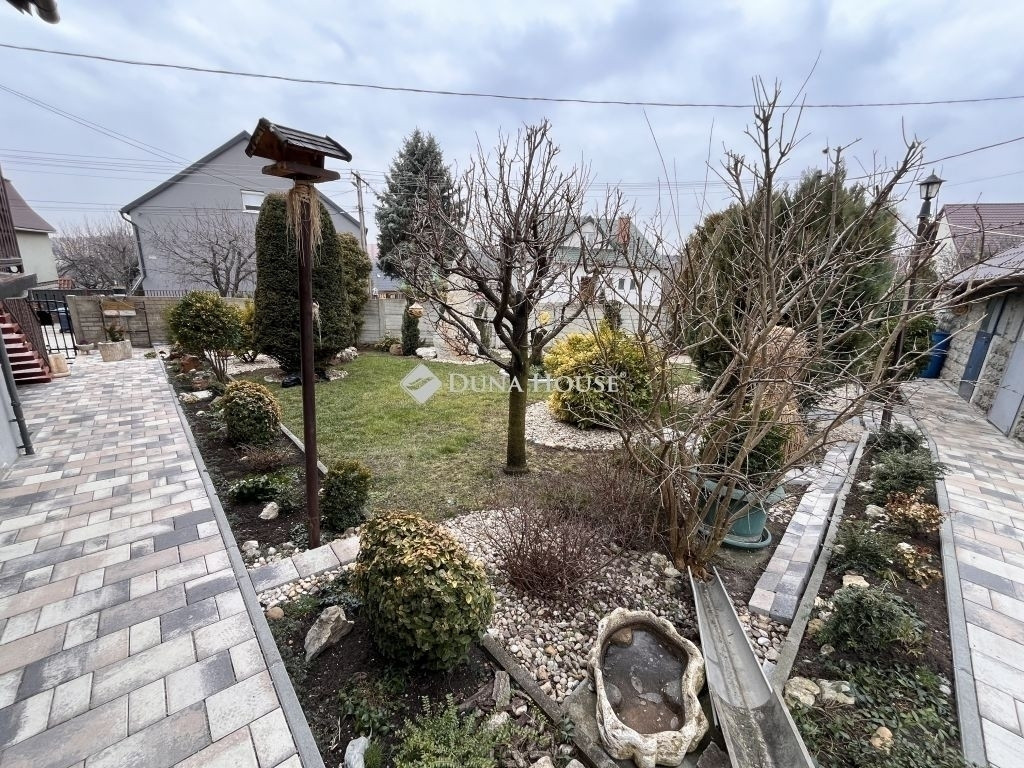 A házhoz tartozó 500 m²-es kert gondozott, esztétikus, és többszörösen díjazott a Virágos Város versenyen, így nemcsak praktikus, hanem igazán hangulatos környezetet biztosít.