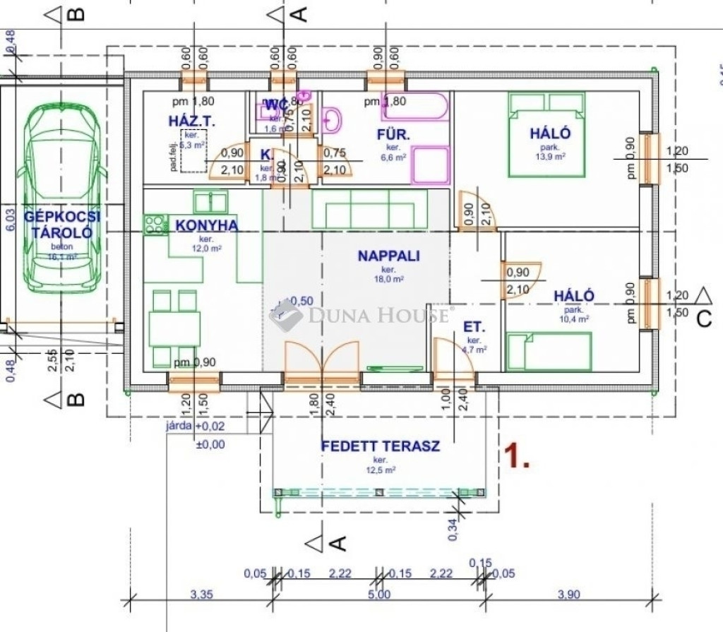 - 30 cm vastag égetett kerámia tégla főfalak, 15 cm-es homlokzati szigeteléssel