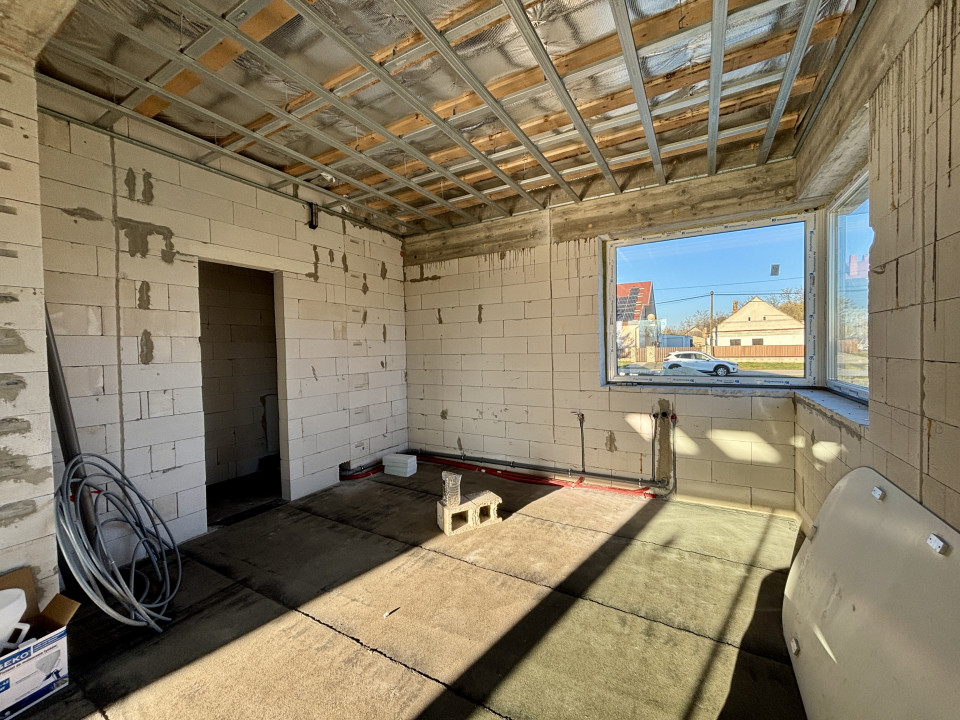 A tervek, műszaki leírás, valamint a teljes építési folyamatról elérhető fotódokumentáció minden komoly érdeklődő rendelkezésére áll! Az irányár a fűtéskész állapotra vonatkozik, az ingatlan kulcsrakész befejezésére is lehetőség van. A ház egy épülő, és egy már elkészült új építésű ingatlan szomszédságában fekszik! Nyílászárói háromrétegű üvegezésű egyedi ablakok, fűtése kondenzáció gázkazánról padlófűtéssel megoldott!