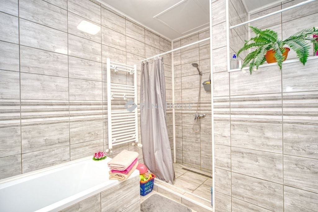 A közlekedőből két gyerekszoba nyílik, a szülői háló a nappaliból elérhető, a fürdőszoba tágas, zuhanyzós és kádas, még a mosókonyha is elfér, sőt még gardrób szoba is van.