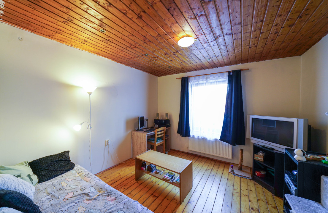 – Földszint: 78 m² (2 szoba, konyha, kamra, fürdő, külön WC, közlekedő)