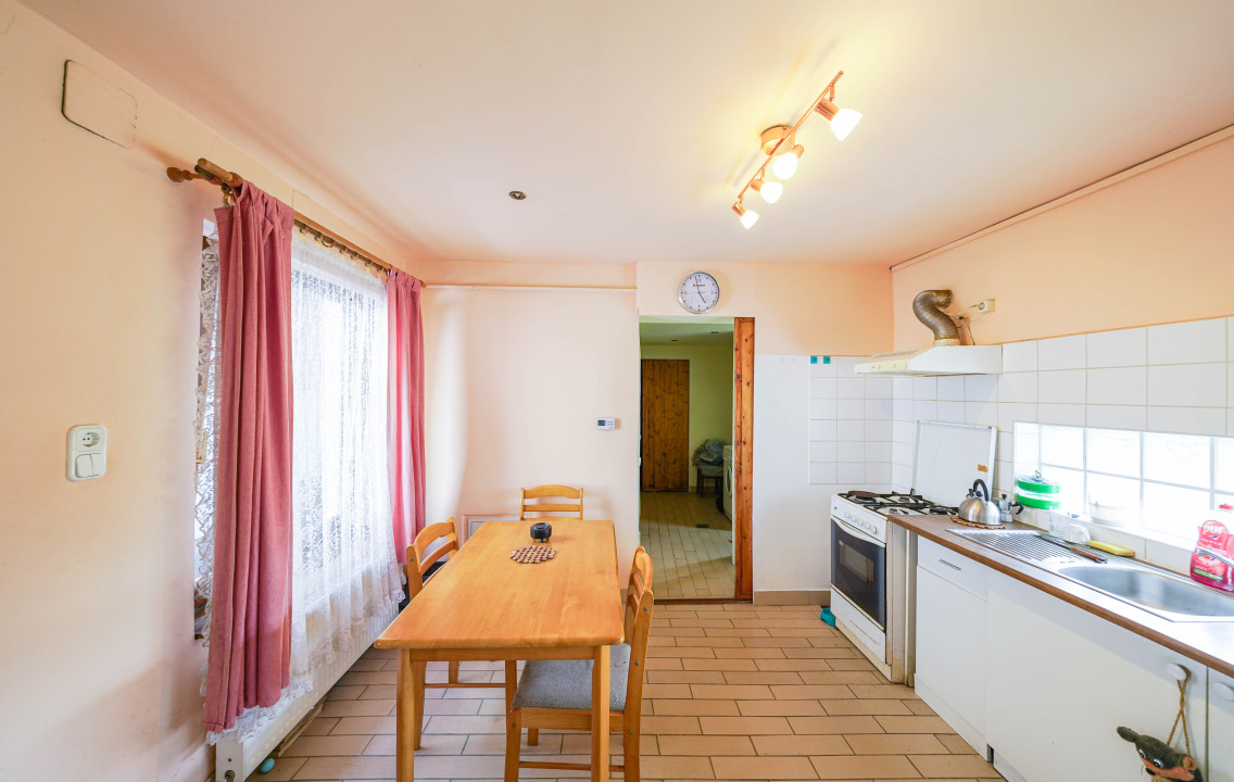 Kis ház (egyben opcionálisan): 60 m² – 2 szoba, konyha, fürdő+WC, közlekedő, jól felszerelt műhely