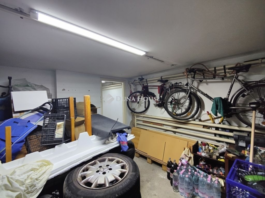 Az ingatlan 60 négyzetméteres pincével, garázzsal, tárolóhelységekkel rendelkezik.