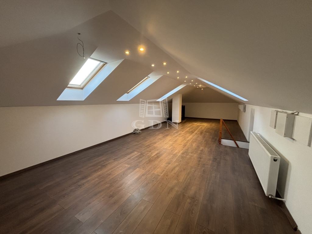 - Két szint + beépített tetőtér, PINCE