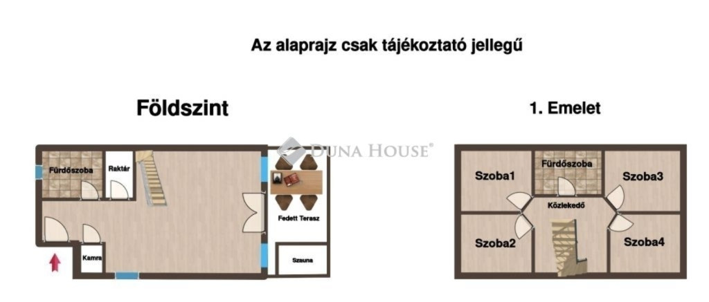 Földszinten található egy tágas, 31,86 m²-es amerikai konyhás nappali a konyhát 2022-ben újították fel, egy kényelmes fürdőszoba WC-vel (8,25 m²), valamint praktikus kamrák és tárolók.