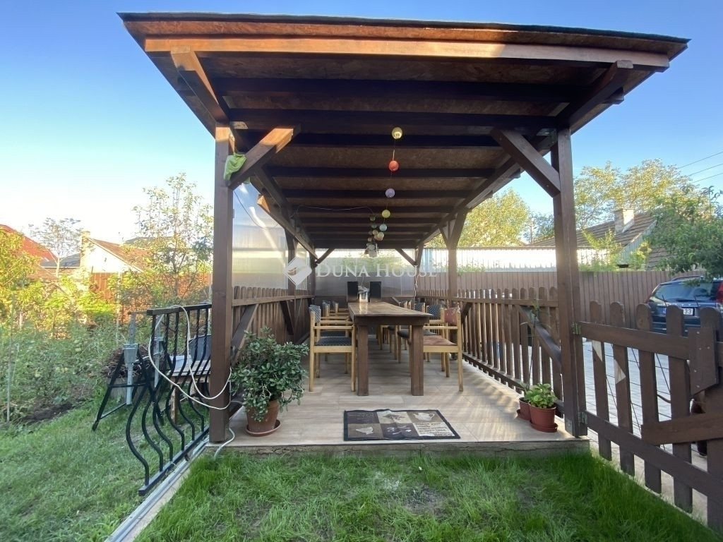 Eladó szépen felújított két lakásra osztott családi ház Vecsés szívében, a Market Central-tól 5 percreösszeköltözőknek, nagycsaládosoknak ideális lehetőség!Csendes, szépen felújított házak szegélyezte utcában, keresi új tulajdonosát ez a közel 100 m2 alapterületű családi ház, mely egy 528 m²-es telken található, termű gyümölcsfákkal és gondozott kiskerttel.Az 1968-ban téglából épült ingatlan 2019-ben teljes körű belső felújításon esett át: Mindkét lakrészben a burkolatok illetve a villany, víz, csatorna és gáz vezetékek korszerűsítve / cserélve lettek, illetve a teljes épület új, műanyag nyílászárókat kapott. 2024-ben az előkert térkövezése illetve a kapu illetve a kerítés cseréje megtörtént. A rezsiköltség csökkentése érdekében, az épület 8 cm-es szigeteléssel ellátott, viszont a falak külső színezés az új tulajdonosra vár, hogy saját ízlése szerint alakíthassa.Alap adatok:Az 1. lakrész 70 m² alapterületű: Az előszobából egy fürdőszoba illetve egy nagyszoba nyílik, majd tovább haladva az egybenyitott beépített konyha és étkező kapott helyet, mely modernül felszerelt és gépesített. A második tágas szoba a konyhából nyílik, mely jelenleg gyerekszobaként funkcionál.A 2. lakrész 30 m² alapterületű: Egy fedett nagyobb teraszról belépve egy kisebb konyha/étkezőbe lépünk, mely ből egy tágas szoba nyílik, illetve külön helységben egy szép napos fürdőszoba is helyet kapott.A telken található egy garázsként funkcionáló melléképület, illetve egy hangulatos szaletli is, mely tökéletes családi rendezvényekhez, nyári bográcsozáshoz is.Az udvaron belül egy vagy két gépjármű parkolására van kényelmesen lehetőség.A ház kiemelten jó helyen található:Vasútállomás 400 m, távolsági buszmegálló 100 m illetve pár percen belül elérhető mind iskola, mind óvoda, továbbá bevásárlási lehetőségek is a közelben vannak.Ideális választás azoknak, akik a kertvárosi nyugalomra vágynak, de nem szeretnének lemondani a városi kényelemről!Csok+-ra is alkalmas, illeve a 3%-os támogatott hitellel kombinálva is megvásárolható. Ingyenes hiteltanácsadás!További kérdéssel, megtekintéssel kapcsolatosan keressen bizalommal!