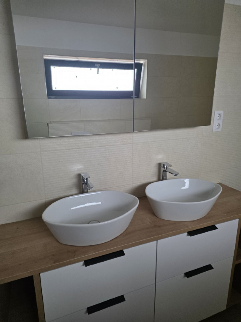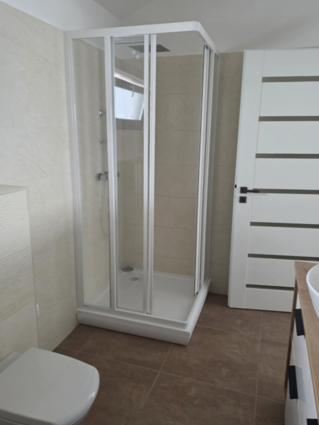 Az emeleten három hálószoba kapott helyet, valamint egy épített zuhanyzós fürdőszoba dupla mosdóval, WC-vel és bidével. A galériás részen egy tágas beépített gardrób biztosít elegendő tárolóhelyet, így a praktikum és a stílus tökéletesen kombinálódik az egész házban.