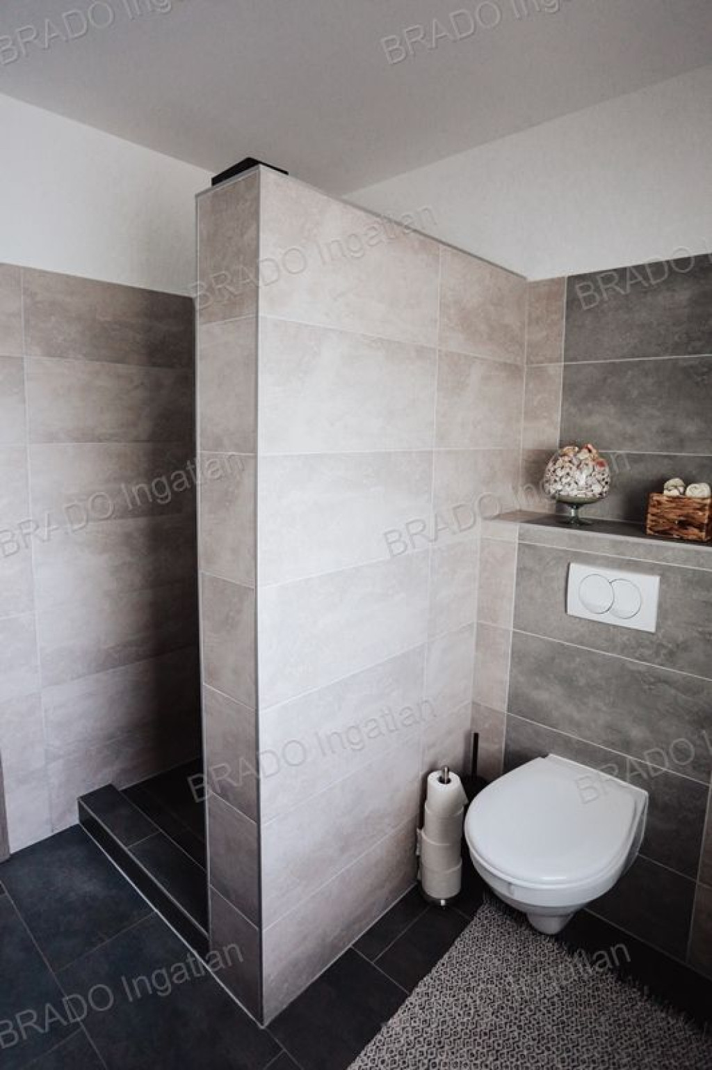 Az épület falazata 30 cm-es Porotherm blokk + 15 cm-es szigetelés. A tetőzet szürke betoncserép.