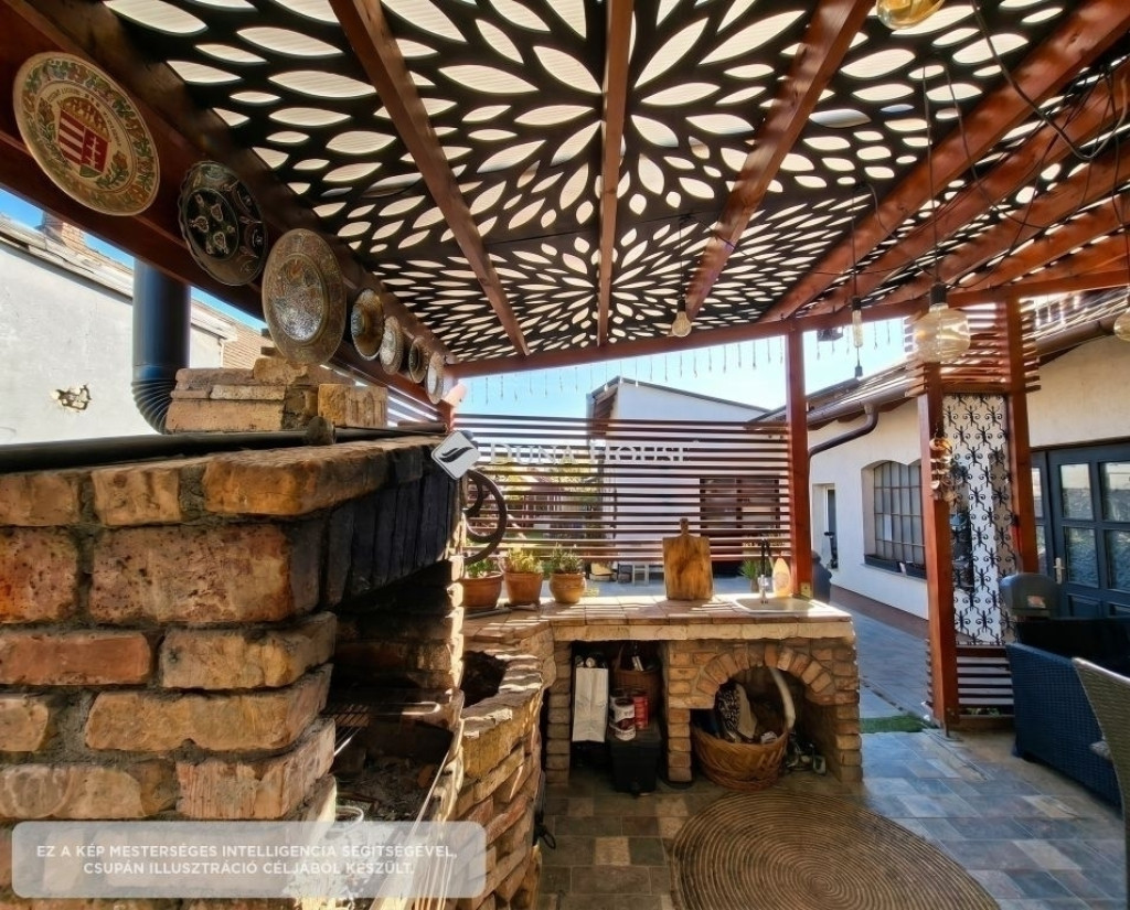 Napelemes családi ház eladó Vecsésen több generációra is alkalmas!82 m²-es, felújított családi ház eladó 530 m²-es telken. Az ingatlanhoz tartozik egy 29 m²-es fedett terasz szaunával, valamint egy 80,5 m²-es melléképület, amely akár külön lakrésszé vagy vállalkozás céljára is kialakítható.Elrendezés: 2 szoba + nappali, konyha, fürdő, gardrób, iroda (külön bejárattal), pince.Főbb extrák:Napelem (éves rezsi ~45.000 Ft)Klíma, padlófűtés + radiátorKamera, riasztóLocsolórendszer, viacolor, műfűKiváló elhelyezkedés:3 perc sétára busz és vonat, gyors elérés az M0, M4, M5 felé. Közelben boltok, iskola, óvoda, orvosi rendelő. Ideális családoknak vagy több generáció együttélésére, illetve vállalkozásra is!