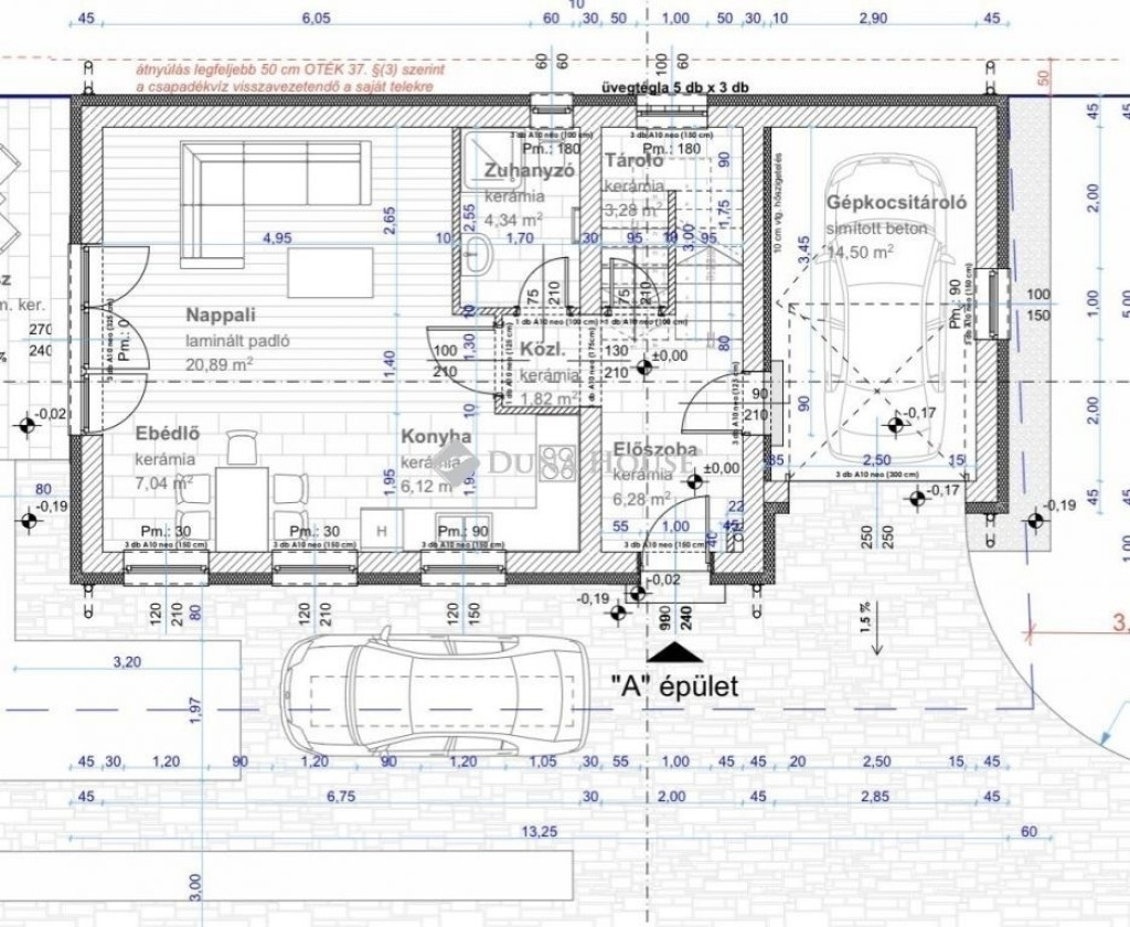 Az épület mellett egy fedett autó beálló került kialakításra.