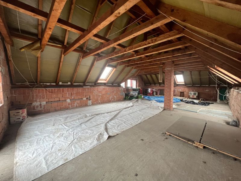 TETŐTÉR :120 m² SZERKEZETKÉSZEN: egyetlen hatalmas, világos tér, ahol szabadon kialakítható akár 3–4 szoba, nappali, fürdő – bármi, amire a családnak szüksége van. Ritka az ekkora mozgástér!