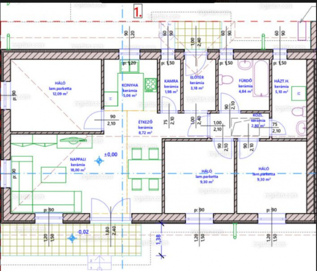 Ideális beosztás: Amerikai konyhás nappali + 3 szoba + fürdőszoba.