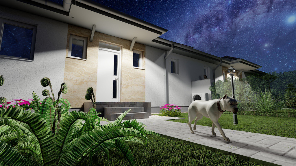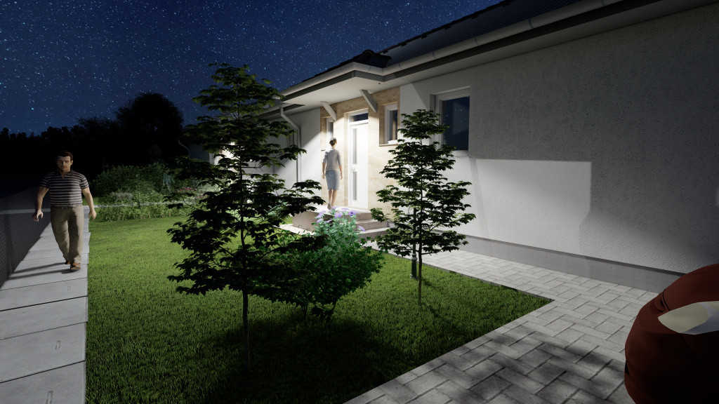 Modern megjelenés: Fehér falak és burkolatok - fekete terrán cserép, színezett bádogozással (választási lehetőség hideg és meleg burkolatoknál), térköves burkolatok.