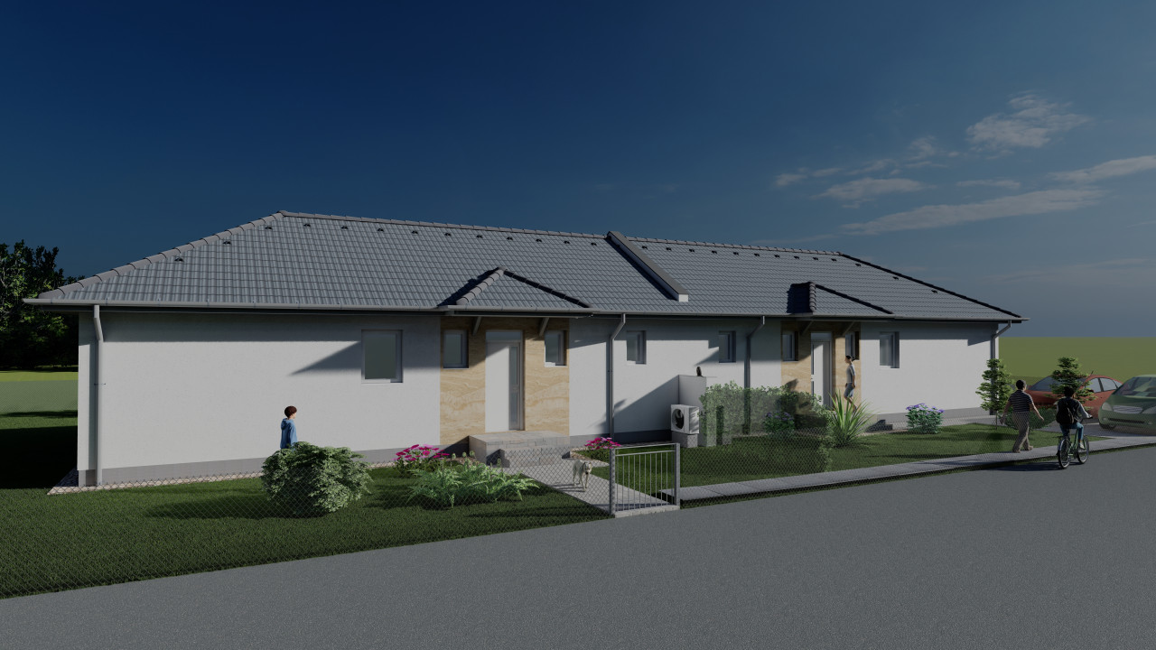 Velencén, a Bence-hegy lábánál, mindössze két percre az M7-es autópályától épül ez a modern, újépítésű ikerház, amely 2026 májusában kerül átadásra. A ház egy 500 m²-es, önálló telekrészen helyezkedik el, 80 m² hasznos alapterülettel, kiváló elosztással és korszerű műszaki megoldásokkal.