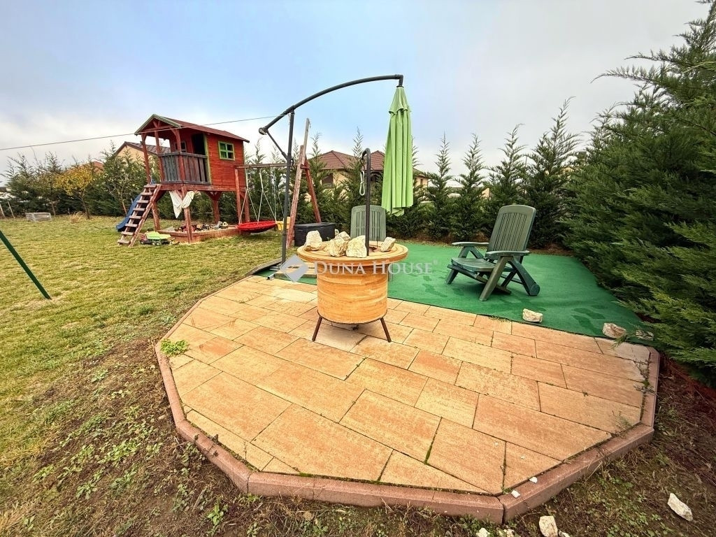 Az ingatlanhoz tartozik egy 42 m²-es dupla garázs, valamint egy 20 m²-es fedett, nyitott terasz, amely közvetlenül a gondosan beültetett, teljesen intim kertre néz. A tujasor, a rendezett pázsit és a természetközeli hangulat valódi biztonságos komfortzónát ad.