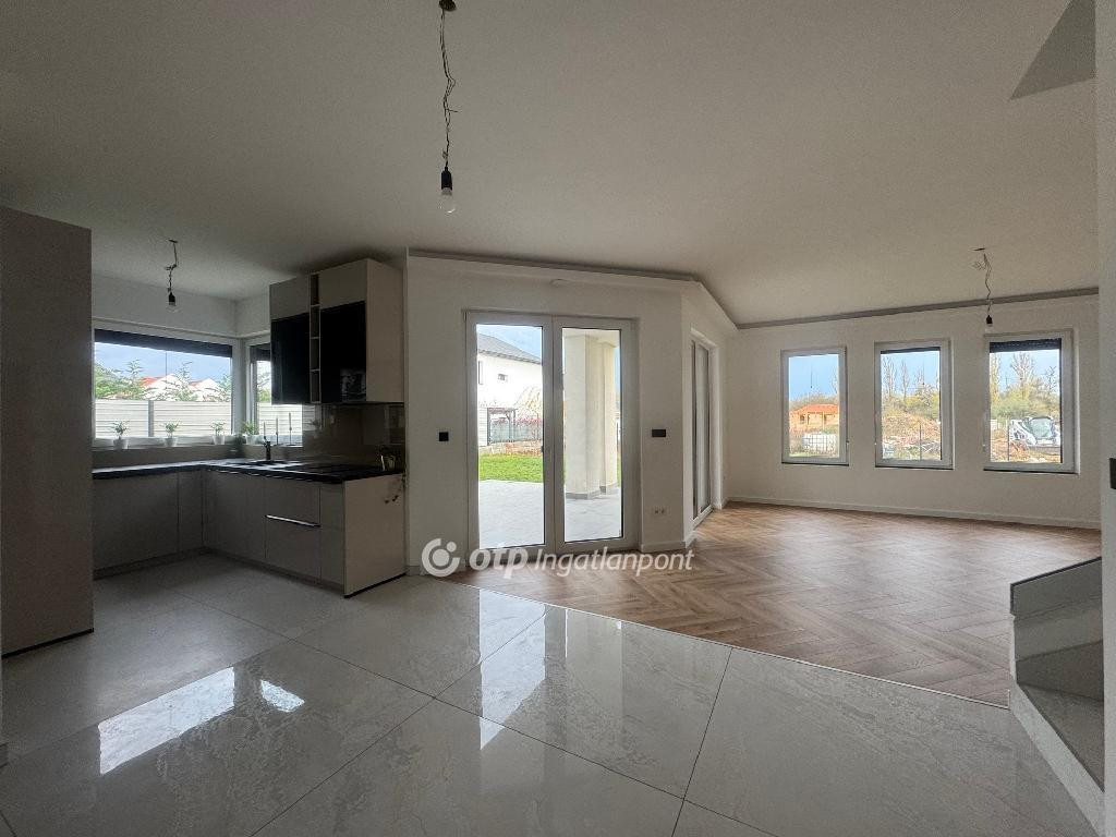 Tágas, napfényes amerikai konyhás nappali kamrával, egy master hálószoba saját fürdőszobával, külön mosókonyha, vendég WC és egy 36 nm-es dupla garázs.