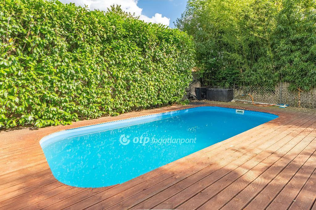 A kertben 3 x 6m-es, 1,5m mély, saját gépészettel ellátott, fűtött medence van 20nm-es napozóterasszal.