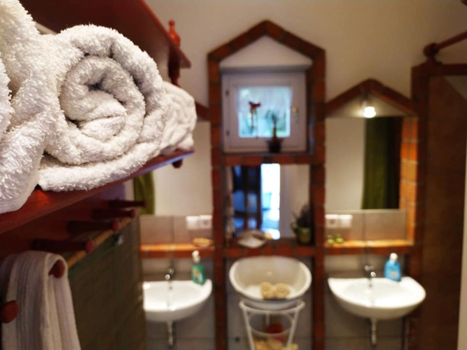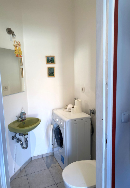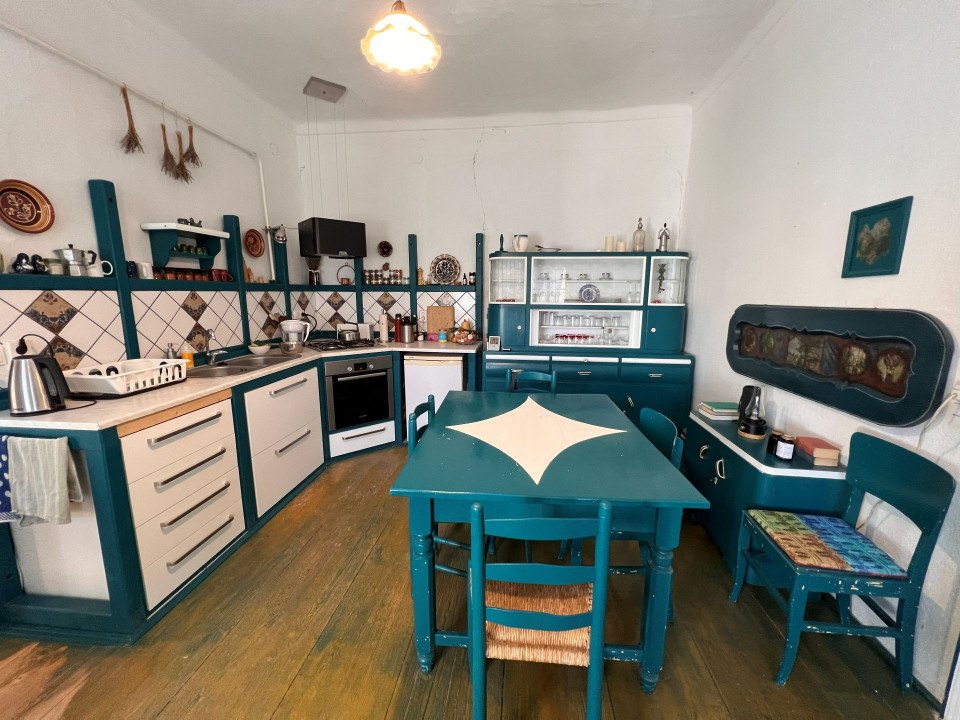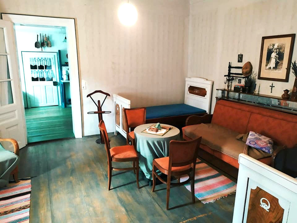 A ház megőrizte eredeti báját: az egyik hálószobában látható sablonminta 1923-ból származik, amely a múlt különleges és autentikus darabja. A fürdőszoba teljesen megújult, új elektromos radiátorral és automatikus páraelszívóval felszerelve, így a kellemes közérzet garantált. A folyosón modern vízlágyító berendezés található, amely tovább növeli a komfortérzetet.
