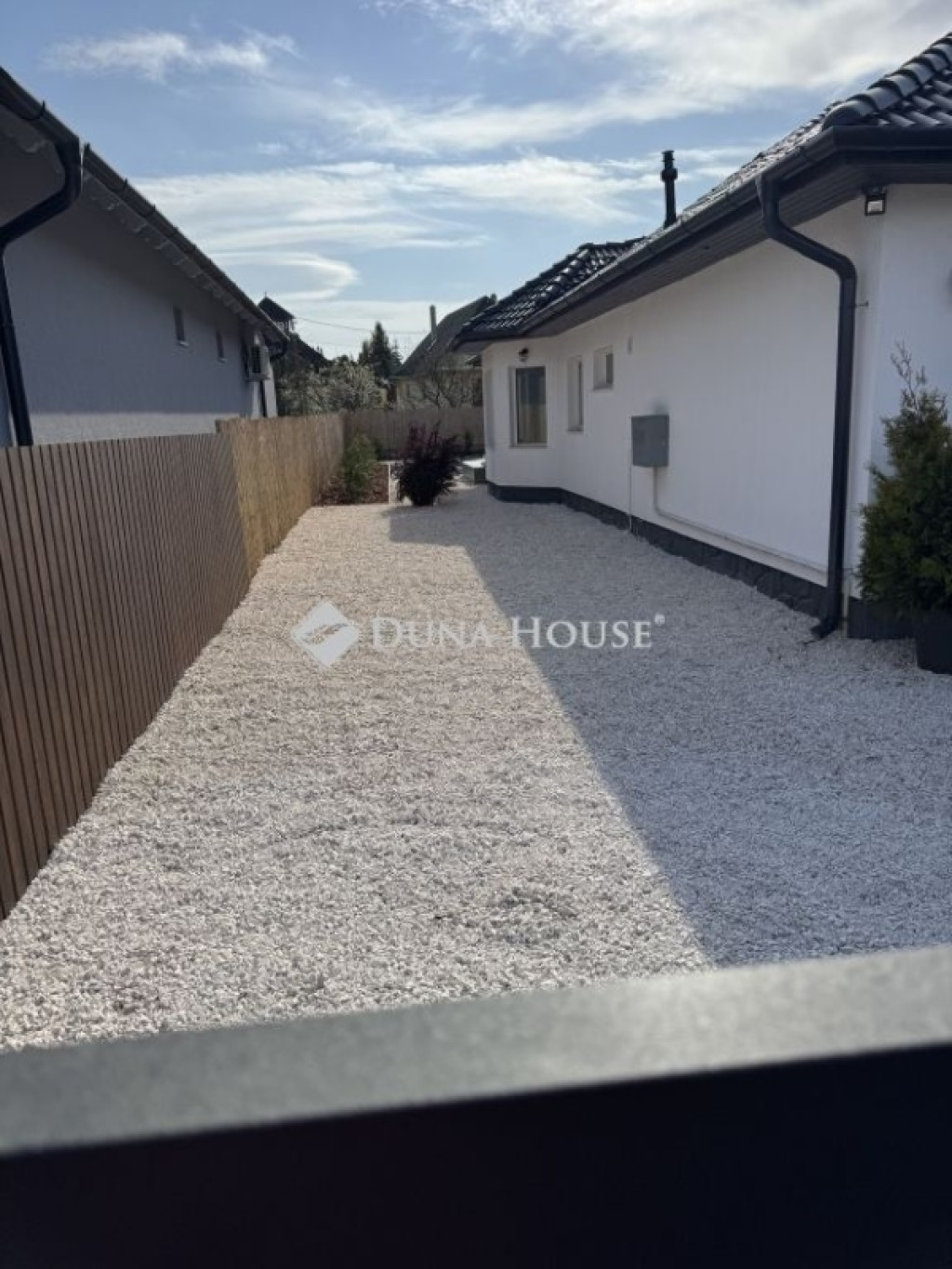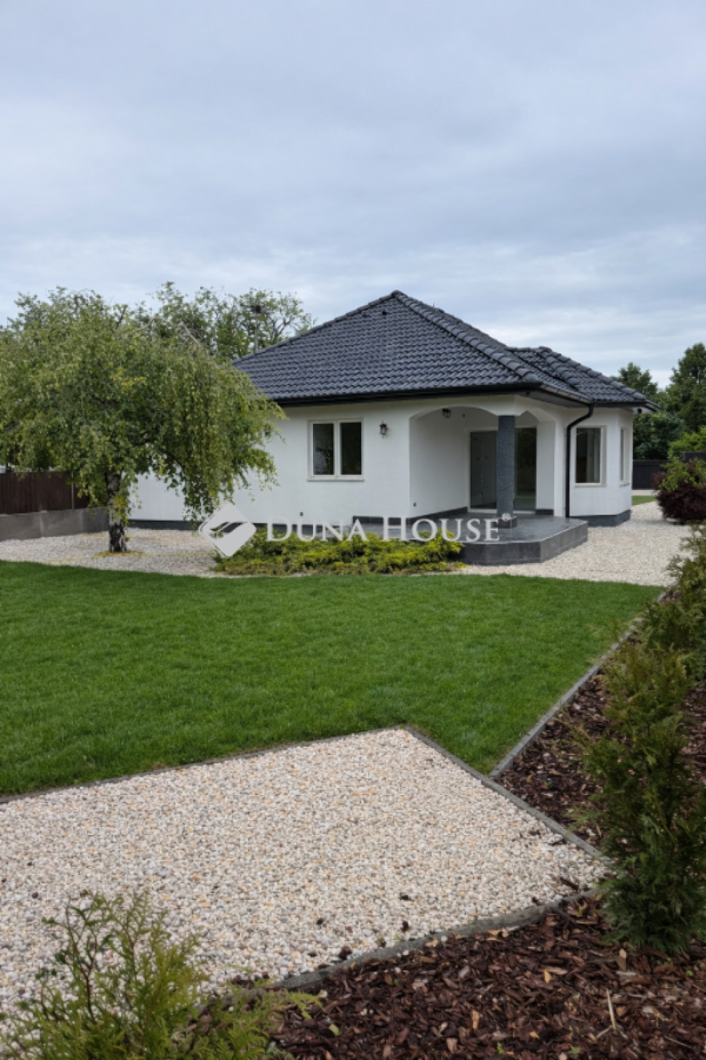 A 2025-ben teljesen megújított kertben 120 m² gyepszőnyeg, örökzöld növényzet és letisztult, elegáns terek biztosítanak nyugodt, stílusos környezetet a családi pihenéshez és baráti összejövetelekhez.