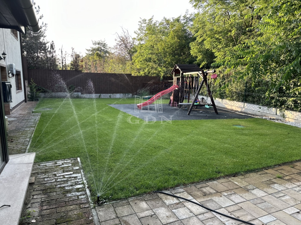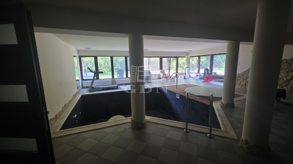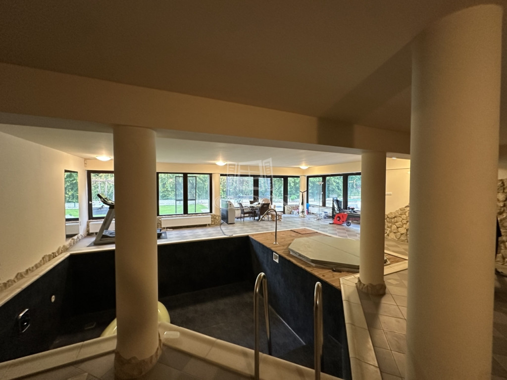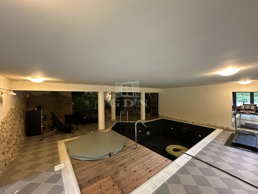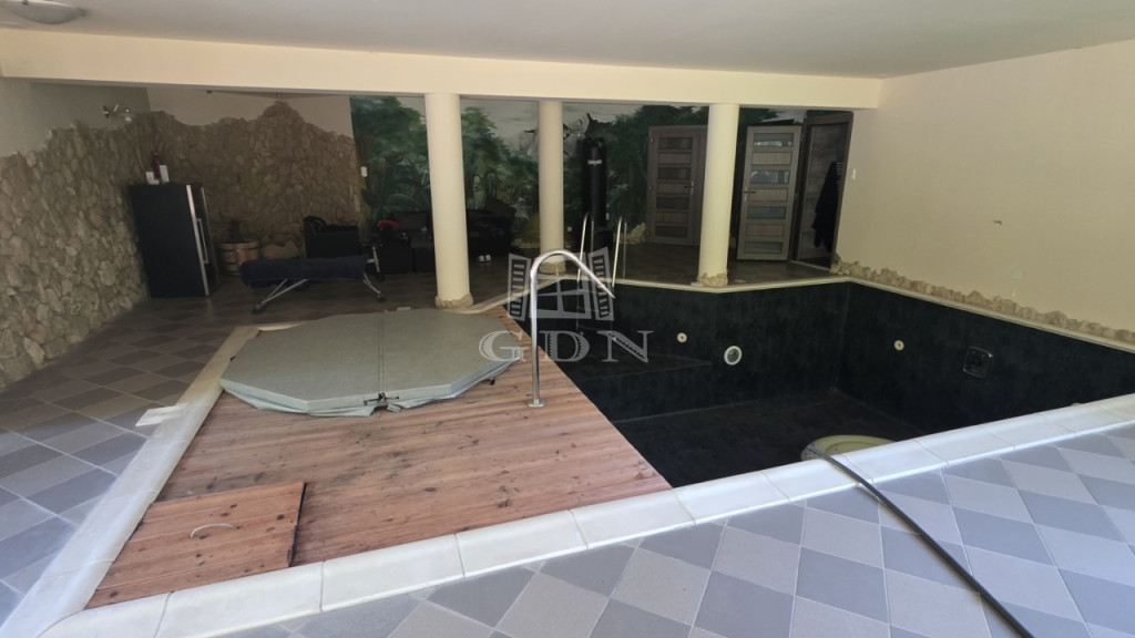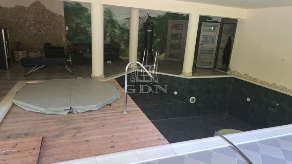 Az igazi kikapcsolódást az alsó szinten található WELLNESS RÉSZLEG teszi teljessé, ahonnan a hatalmas nyílászáróknak köszönhetően remek kilátás nyílik a kertre. A 9x4 méteres medence és a mellette található jakuzzi hőszivattyús fűtéssel rendelkezik. Külön helyiségben található a szauna, és a zuhanyzó. Ugyanezen a szinten a 2 hálószoba mellett kialakításra került egy tároló, valamint egy tágas háztartási helyiség is.