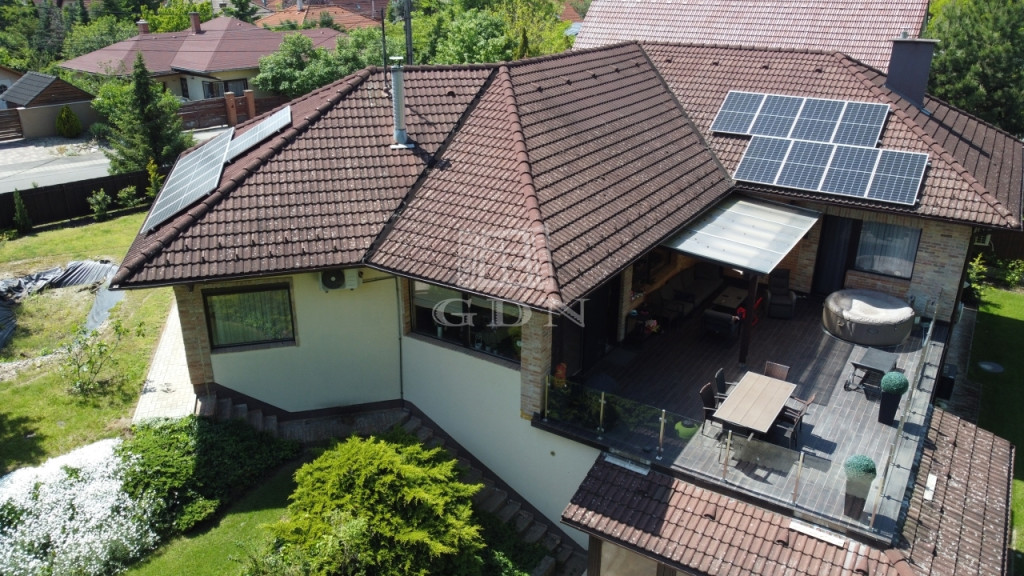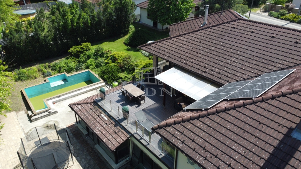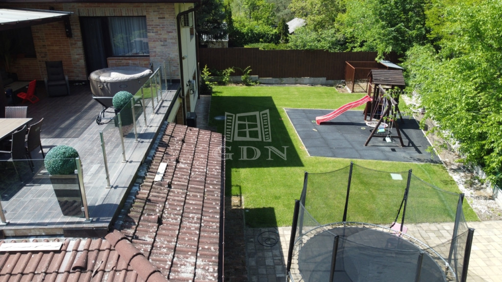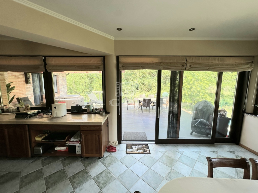 Az ingatlan másik különlegessége a csodaszép kertre, ill. a kültéri medencére néző, konyha-étkezőből nyíló 57 m2-es terasz.