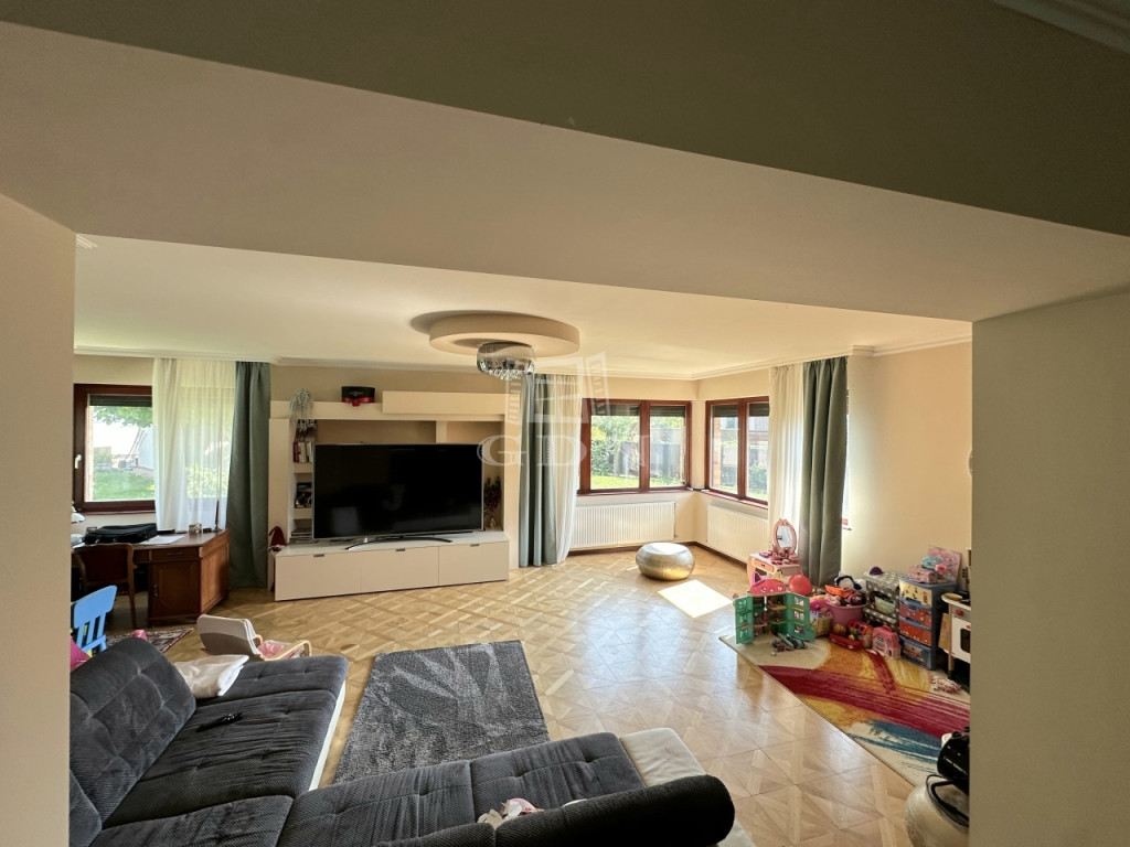 A jól átgondolt tervezésnek köszönhetően a hálószobák, és a hozzá tartozó fürdőszobák, wc-k jól szeparáltak az épület központi helyének számító rendkívül tágas, étkezős konyhától, és a világos nappalitól. Ez a 2 helyiség együtt 80 m2.