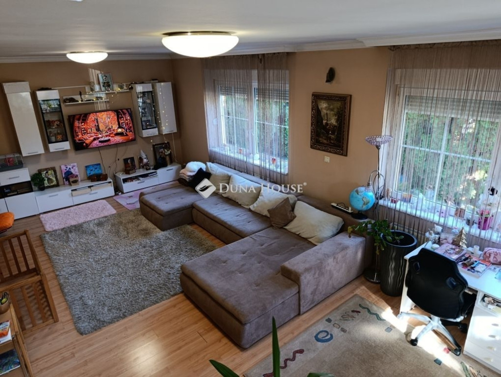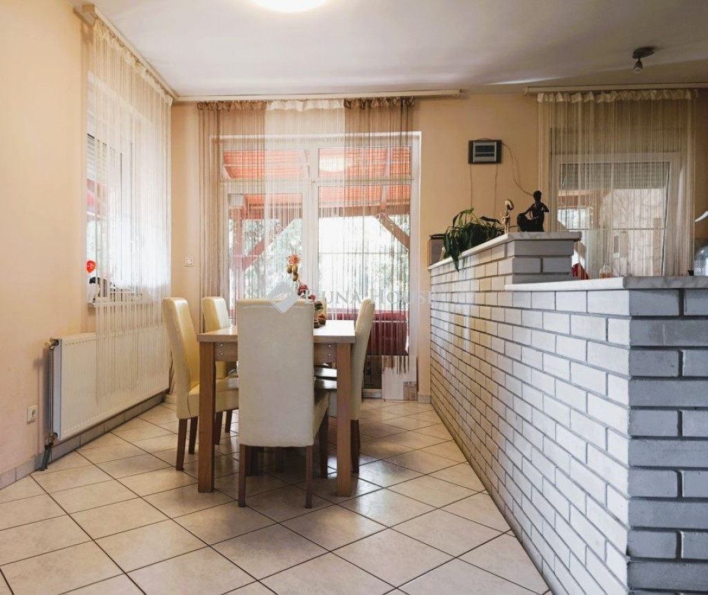 Az 1996-ban téglából épült, két szintes, öt szobás, vasbeton födémes, napfényes ház kiváló állapotban van. A fűtéséről gáz cirkó (a hideg burkolatok alatt padlófűtéssel a földszinten) és egy fa tüzelésű kandalló gondoskodik, míg a tetőtérben klíma is felszerelésre került.