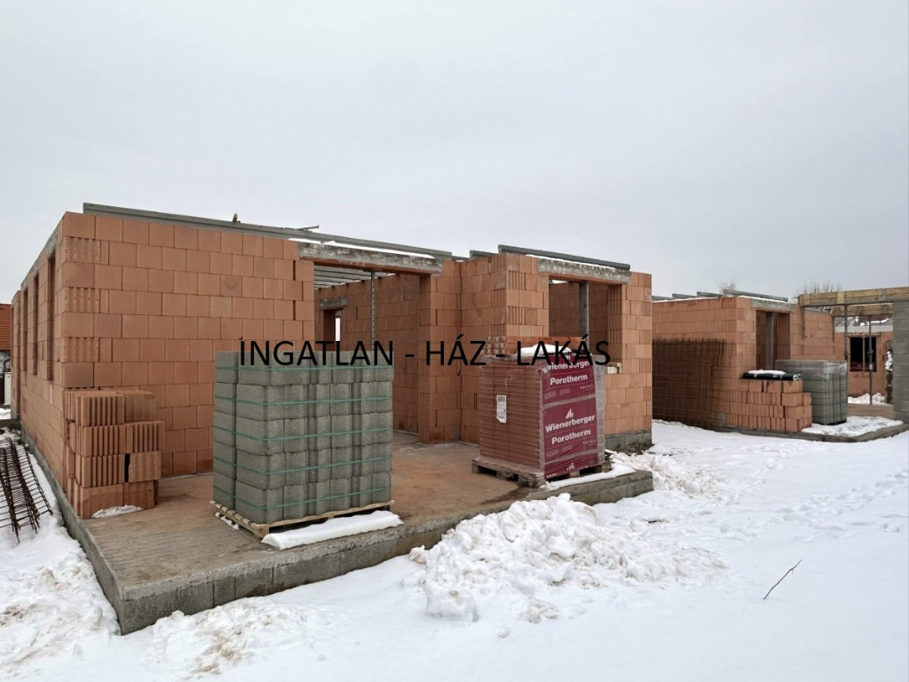 Az ingatlan falai 30 cm-es Porotherm NF téglából épülnek (síkra csiszolt okos tégla) betongerendás födém + 15 cm dryvit szigeteléssel.