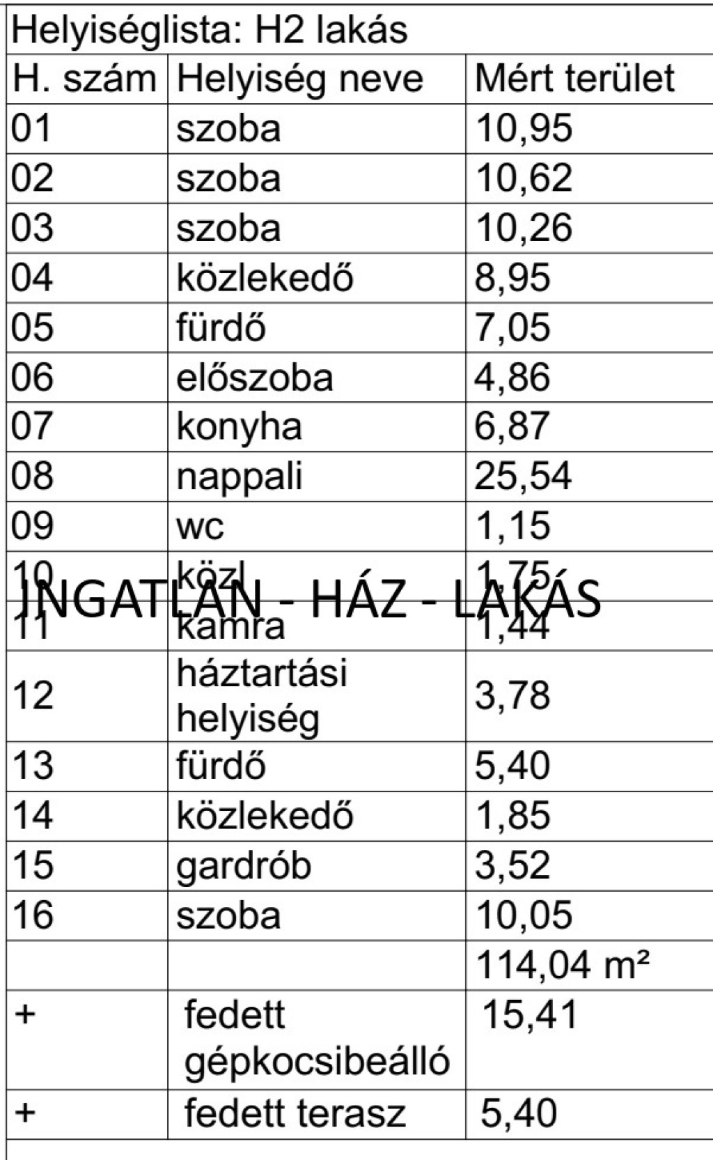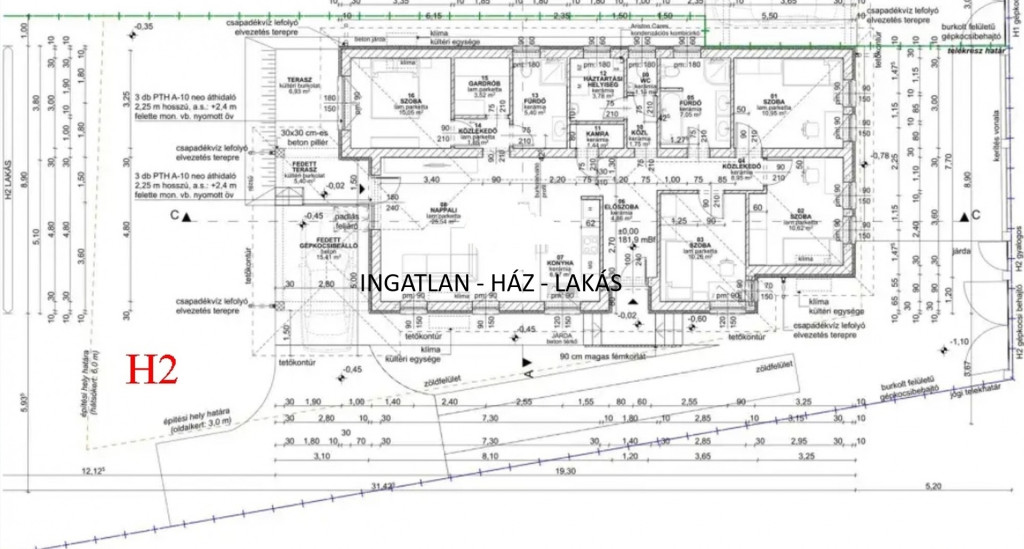 H2 házhoz tartozó telekrész 531 nm Fedett gépkocsibeálló 15,41 nm Terasz 12,33 nm