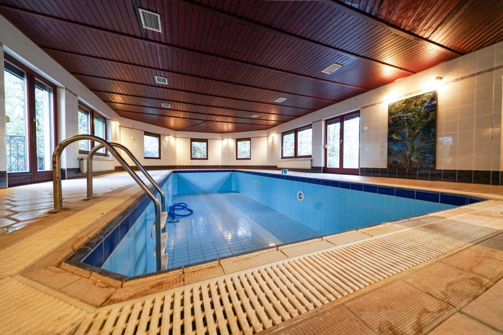 A földszintről közvetlenül, az épületen belülről közelíthető meg a fedett, 50 m³-es, feszített víztükrű úszómedence, amely egész évben biztosítja a wellness élményt. A medencetérhez kapcsolódik a szauna, egy fürdőszoba, valamint a háztartási és gépészeti helyiség is, így a kényelem és a praktikum tökéletes összhangban van.